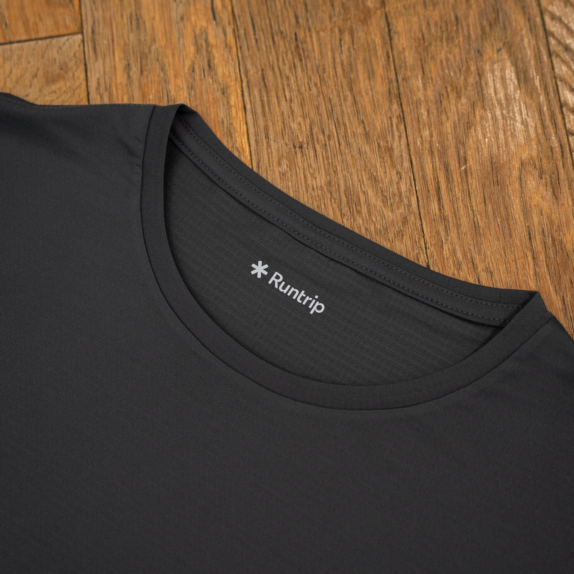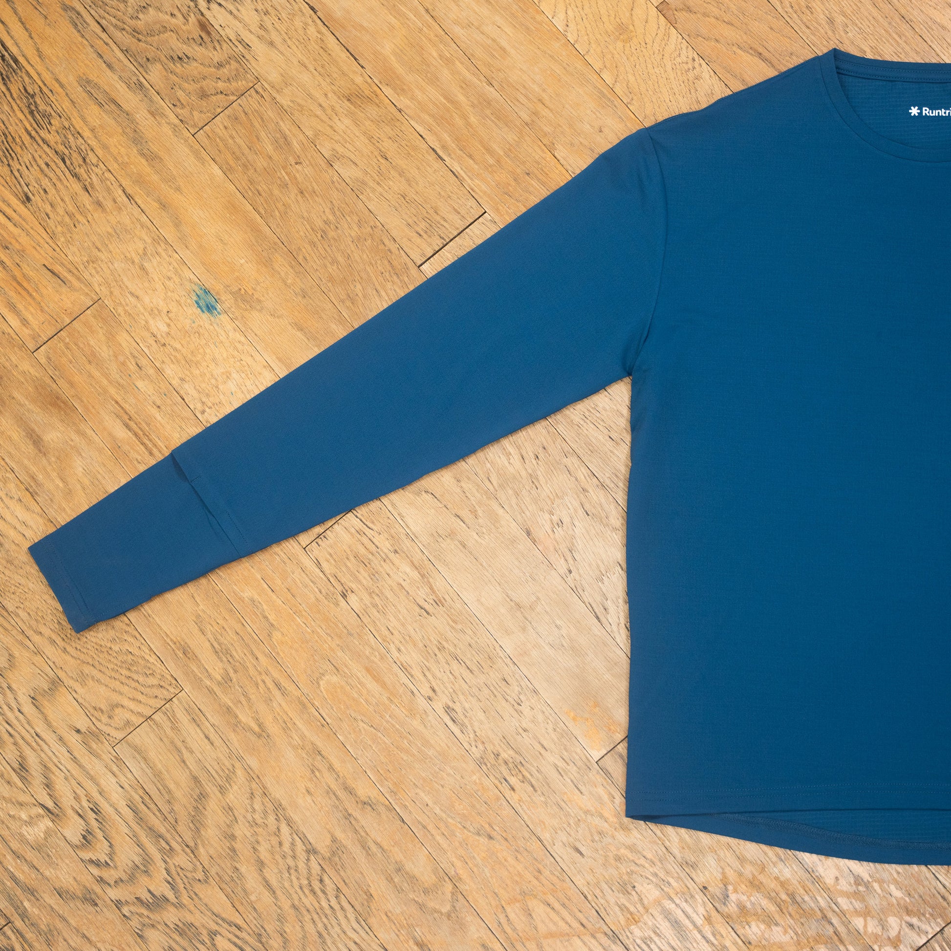Runtripがランナー目線で開発した、ウォッチウィンドウ&サムホール付きのオリジナルロングスリーブTシャツ。