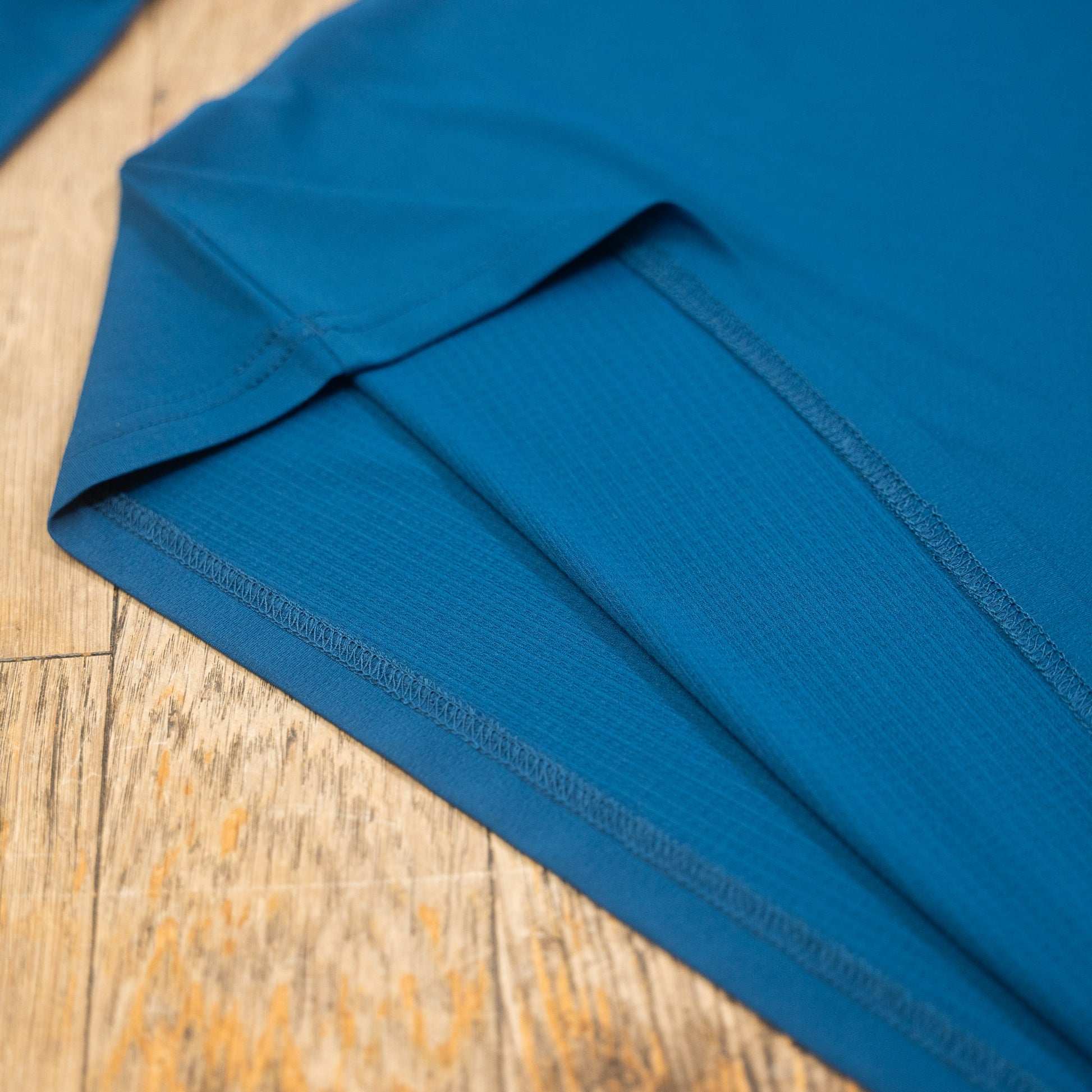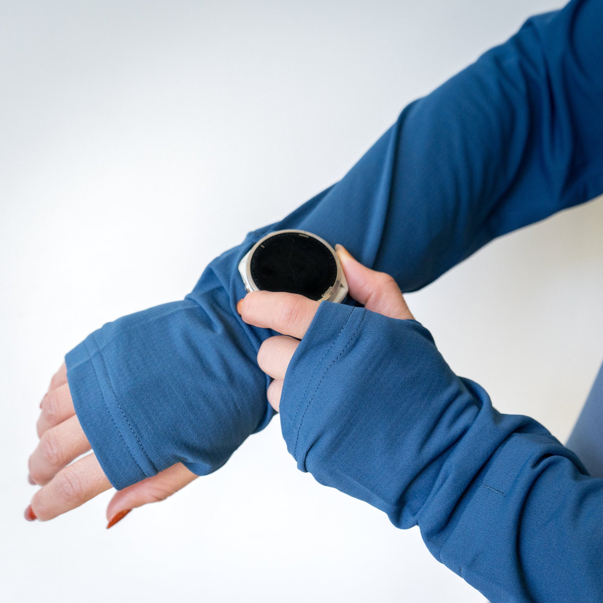 袖口にはウォッチウィンドウを配置し、袖を下ろしたままでもスムーズにログを確認可能。さらにサムホールを備えることで、手の甲までしっかりカバーしながらフィット感を高め、冷気や紫外線から肌を守ります。
