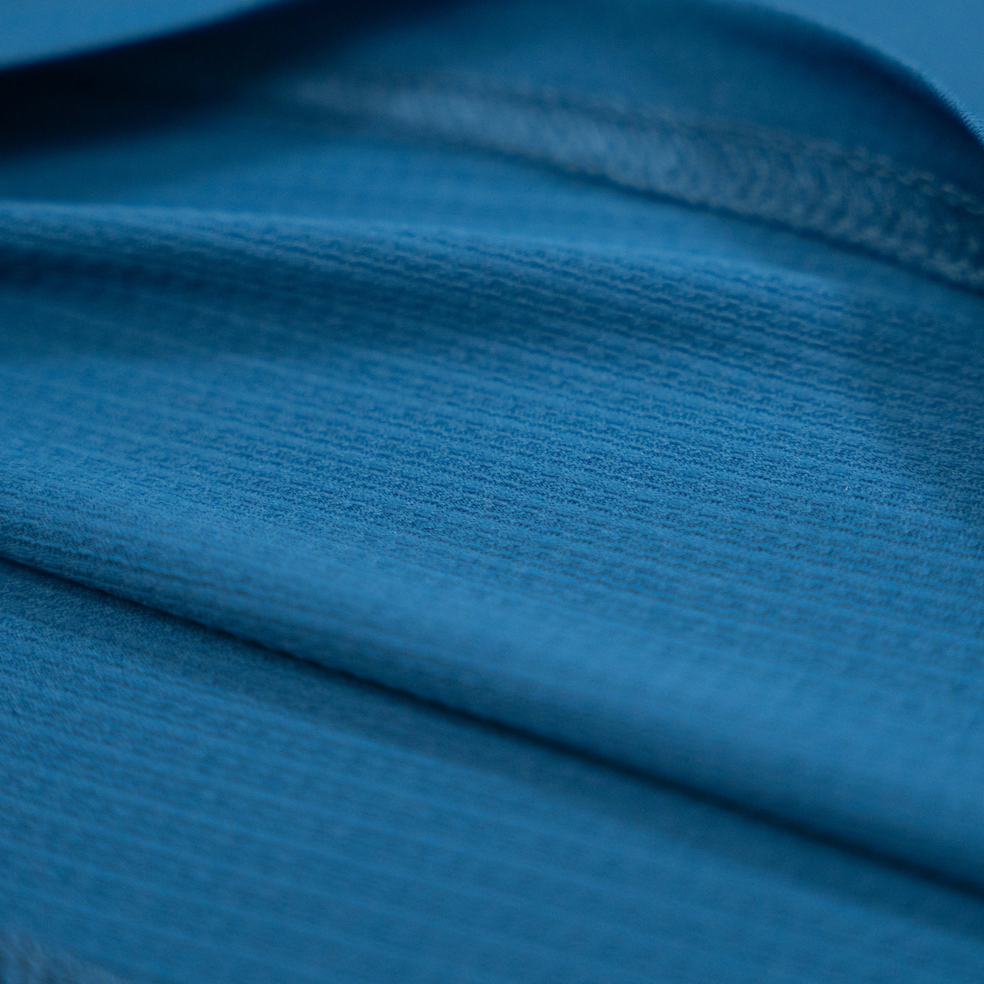 肌面に凹凸のある構造が汗によるベタつきを軽減し、常にドライな着心地をキープします。吸水速乾性に優れ、長時間のランでも快適さが持続。