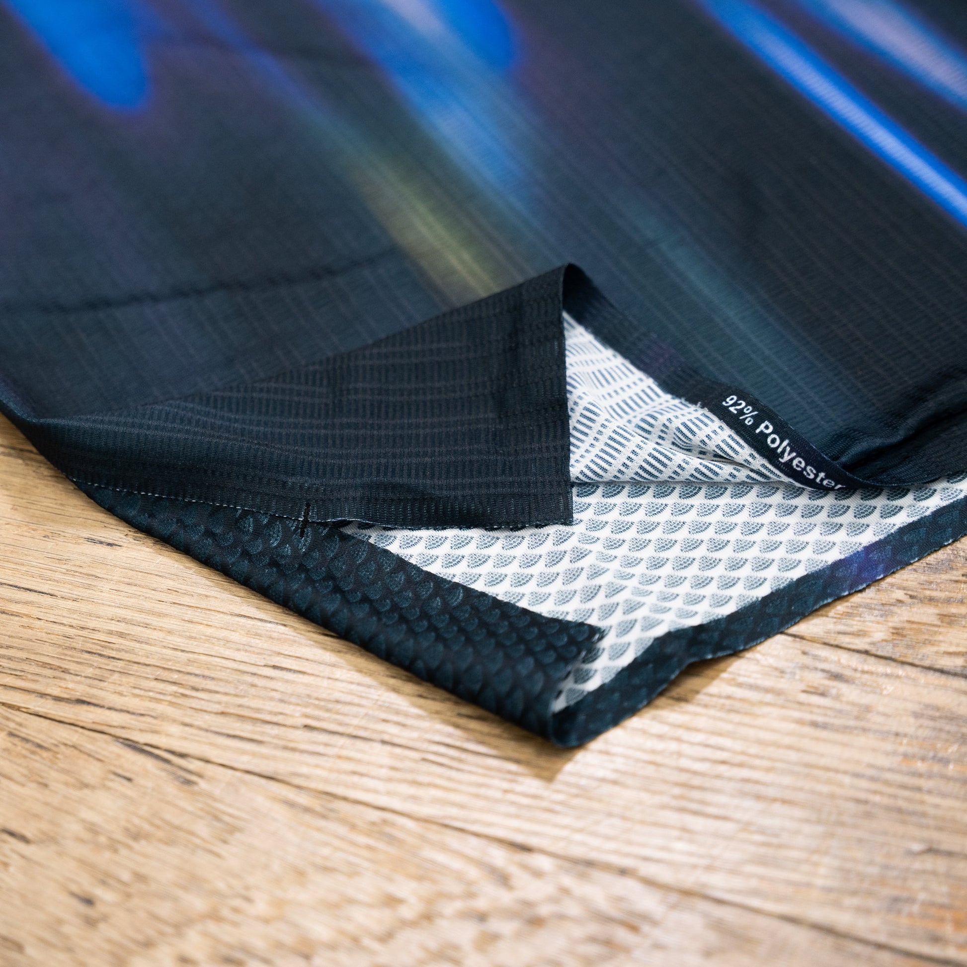 ※本製品の首元に貼り付けております品質表示タグは「92% Polyester 8% Spandex」表記となっておりますが、正しくは「92% Polyester 8% Polyurethane(Spandex)」となります。