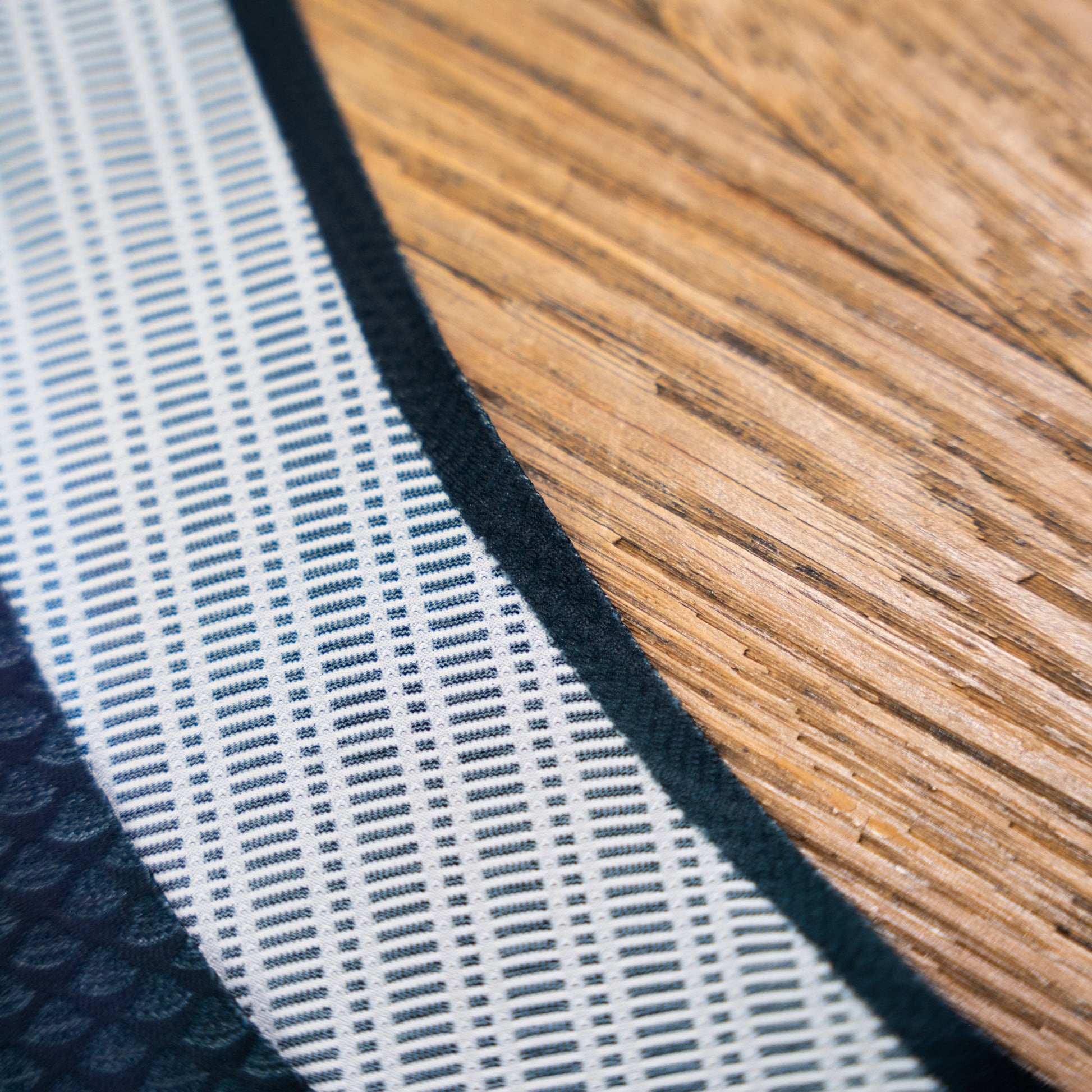 素材には、ポリエステルとスパンデックス(ポリウレタン)の混紡の機能素材を採用。