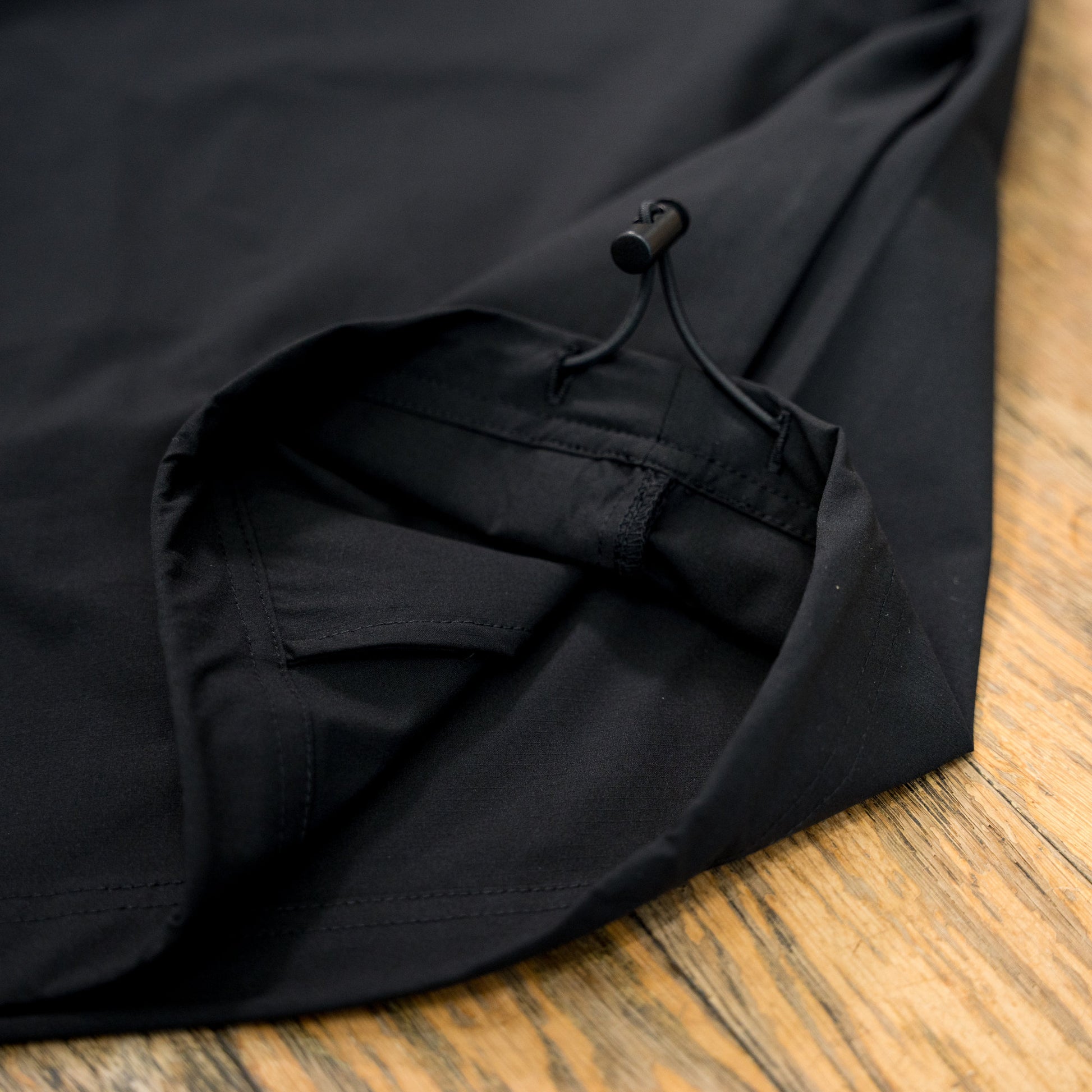 裾にはドローコード付きで、体にフィットさせて風の侵入を防ぎ、動きに合わせてシルエットを調整可能。走行フォームを妨げず、快適な着心地をキープします。