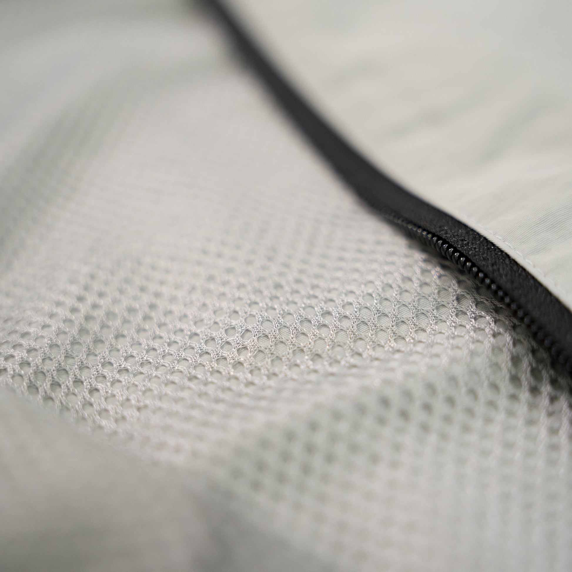 インナーとのレイヤードを楽しんだり、シルエットを調整したりと、着こなしの幅を広げます。さらに、ランニング中など暑さを感じた際は、下からファスナーを開けるだけで手軽に温度調整ができる実用性の高さも魅力です。