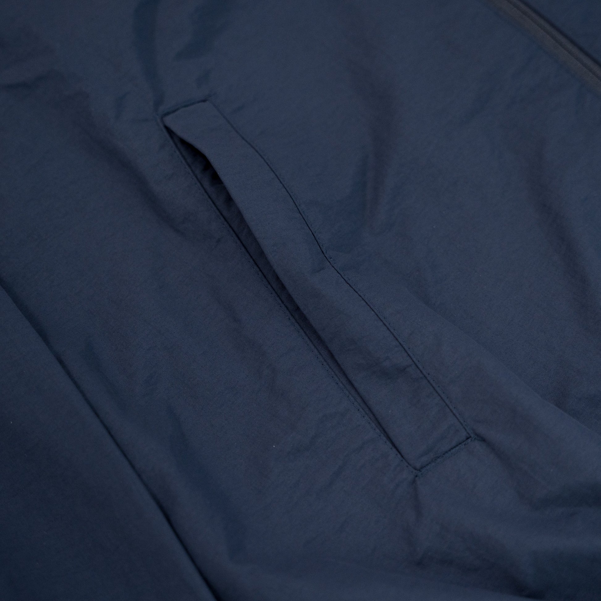 シンプルな佇まいに、クラブのグラフィックロゴが刺繍された、ややシワ感のあるマットな質感のナイロンジャケット。普段使いからレースのビフォーアフターなどシーンも多岐に渡り着用できるアイテムに仕上がっています。