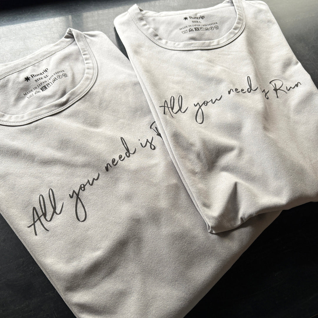 胸元に施したのは「All you need is Run」ロゴのリフレクタープリント。光が当たると反射するリフレクターを搭載し、ナイトランでも安心な仕様に。