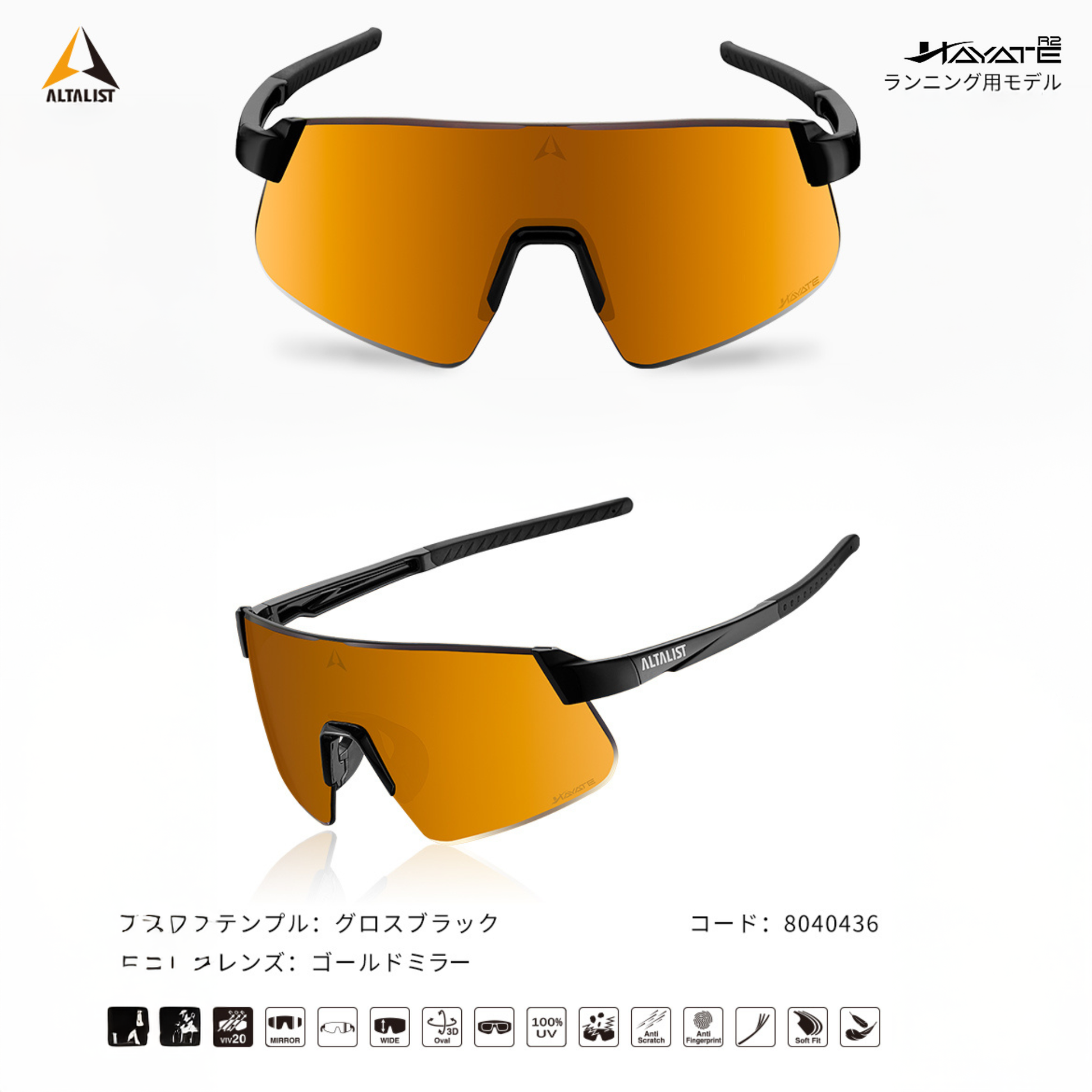 ALTALIST HAYATE R2 (Glossy Black Temple / Gold Mirror VIV20 Lens)
