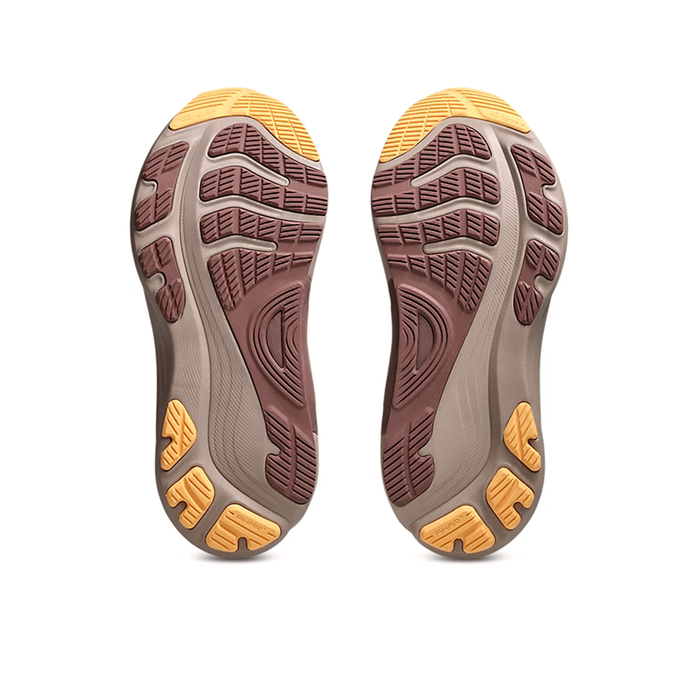 独自開発のラバー素材2種類を配した「HYBRID ASICSGRIP(ハイブリッドアシックスグリップ)」を採用し、グリップ力と耐久性を両立。中足部にはさまざまな路面コンディションでも優れたグリップ力を発揮する「ASICSGRIP(アシックスグリップ)」を使用し、着地や蹴り出し時に力がかかりやすいつま先部とかかと部には当社従来ラバーと比較し約3倍の耐摩耗性をもつ「AHARPLUS(エーハープラス)」を採用して安定のグリップを実現しています。