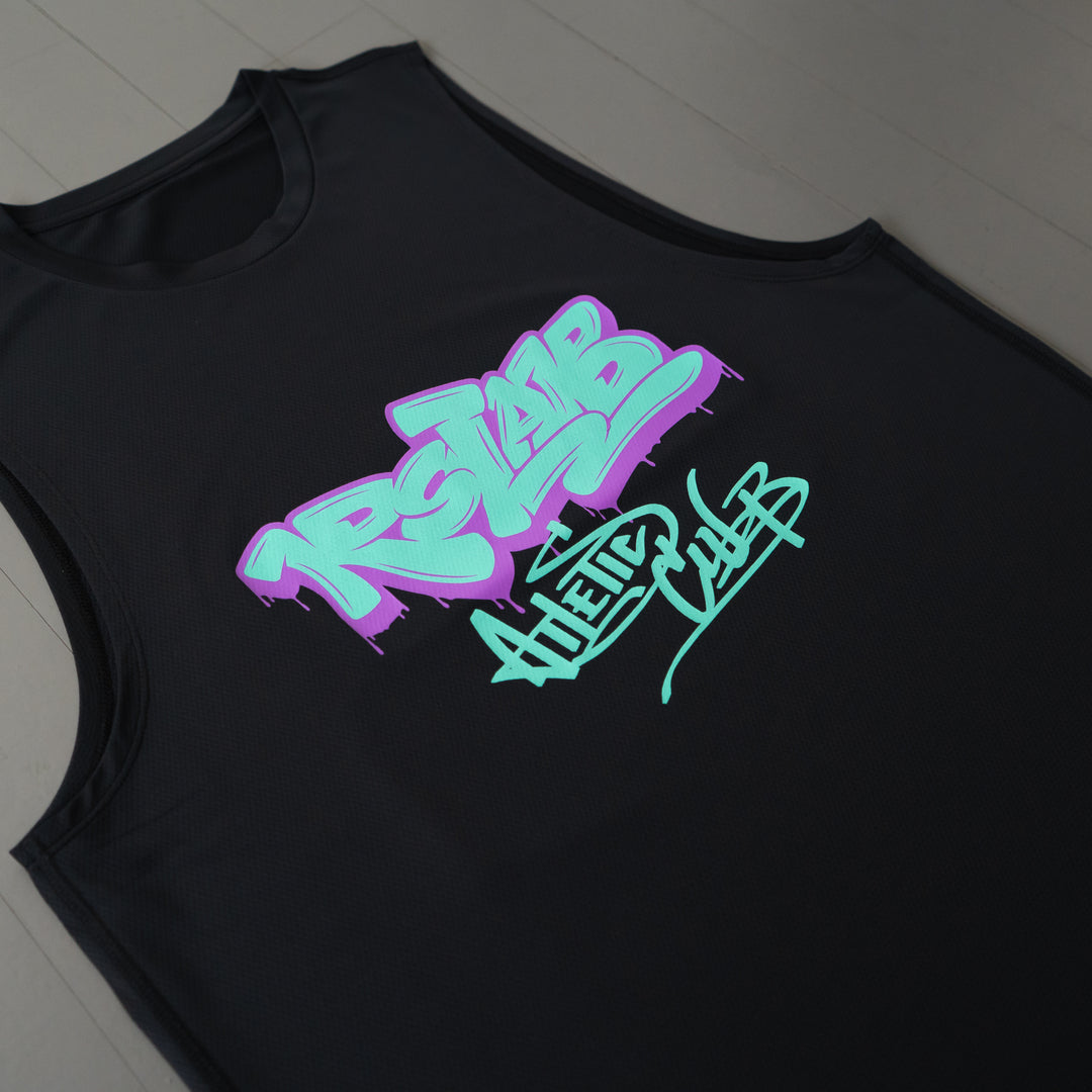 フロントのグラフィックはスプレーアートを再現。RSLABが位置する渋谷、原宿で見られるスプレーアートをパフォーマンス素材に落とし込んでいる。