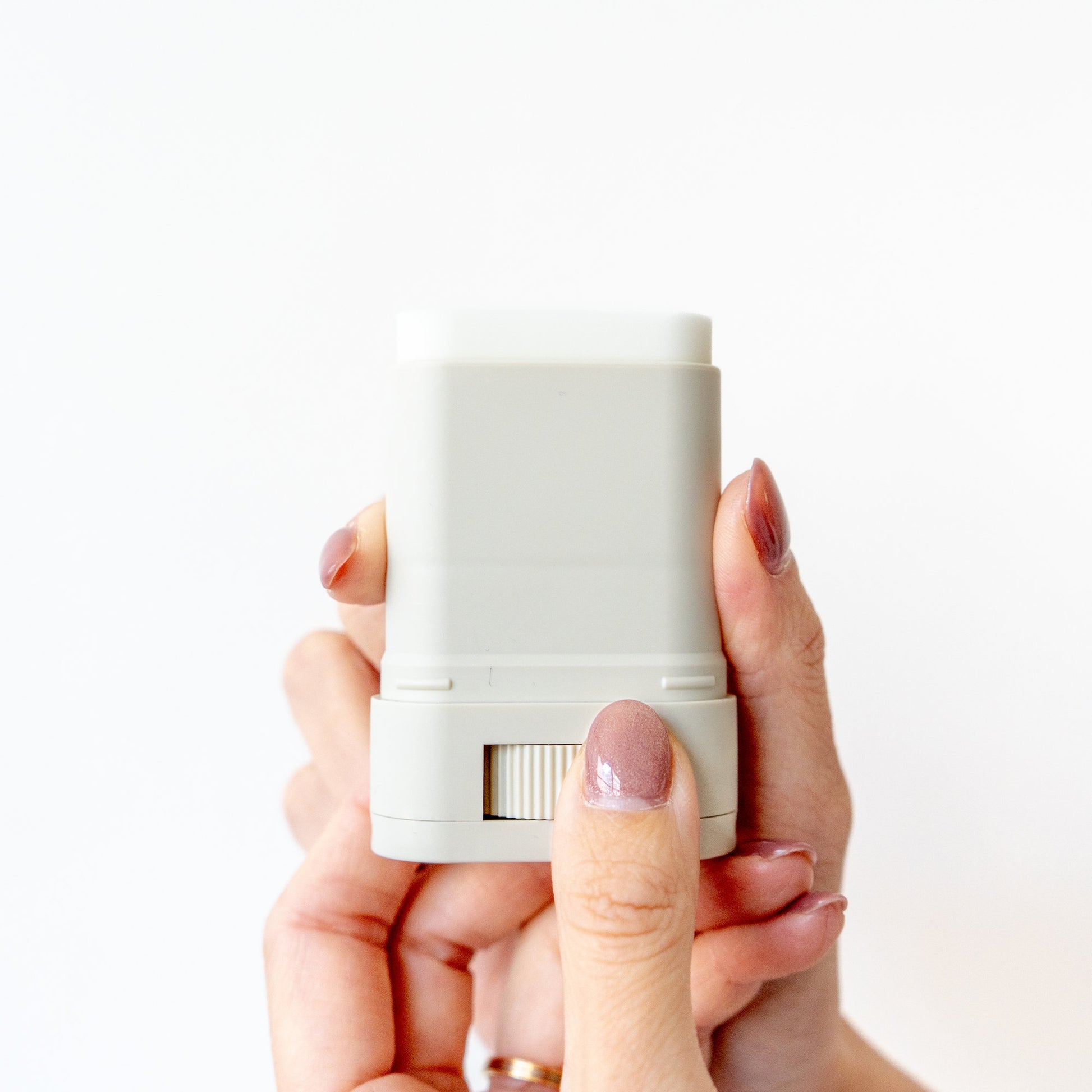 ・スティックを容器から5㎜ほど繰り出し、肌に直接フィットさせ、塗りムラのないように塗布してください。