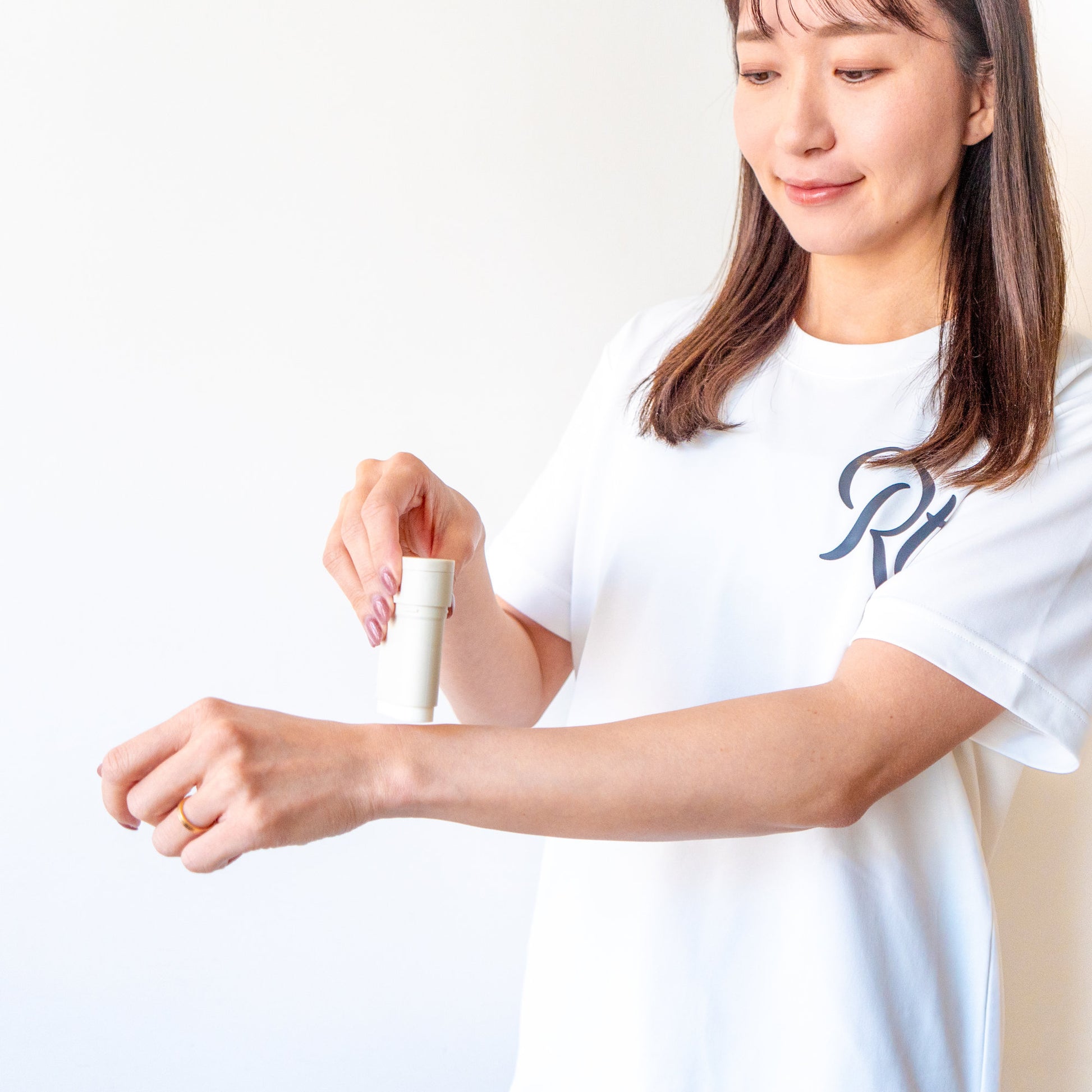 最大の特徴は、肌に直接滑らせるだけのスティック形状。