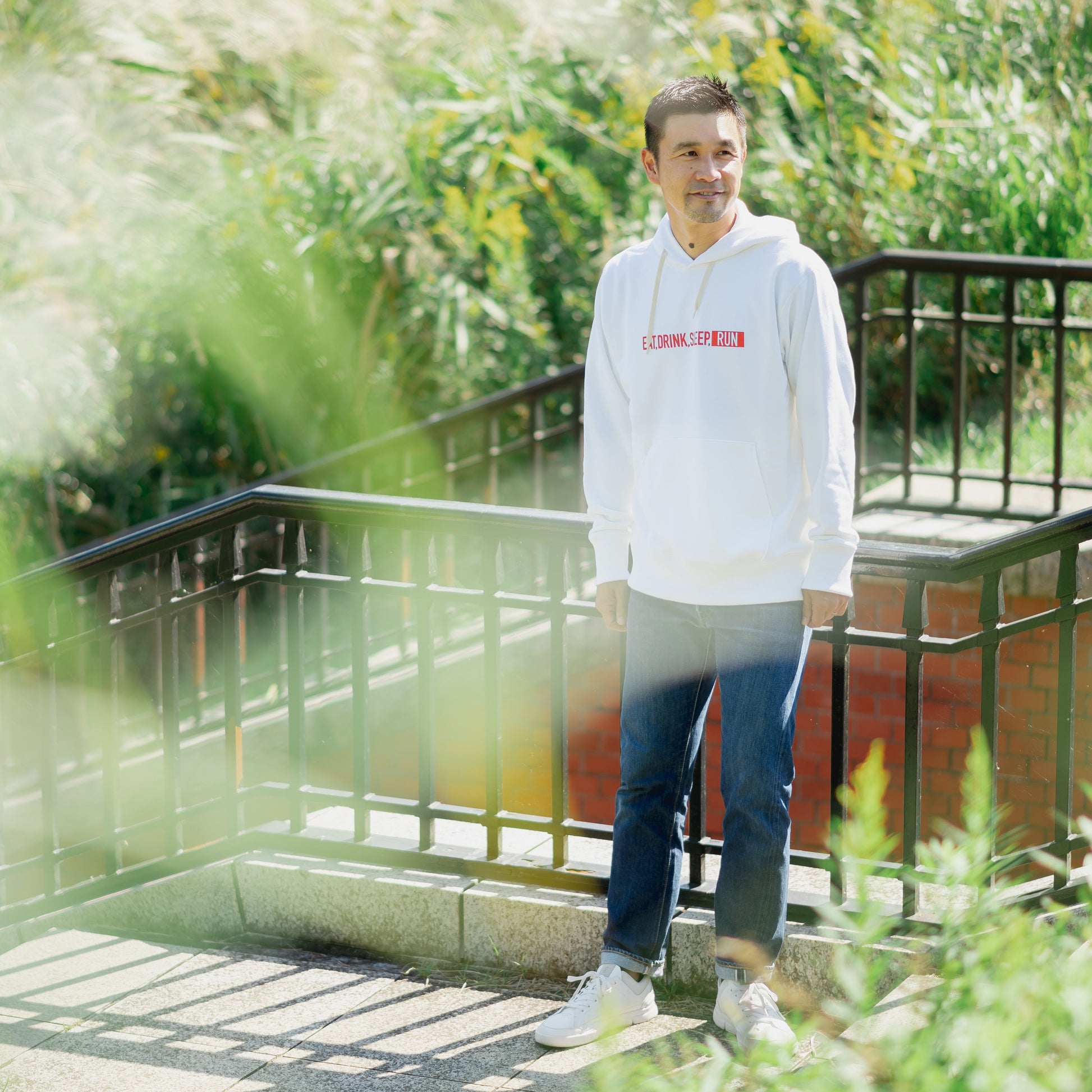 Just eat, drink, sleep, and run. The "EAT DRINK SLEEP RUN / STREET Hoodie" is a garment that embodies this simple lifestyle in 360 degrees.