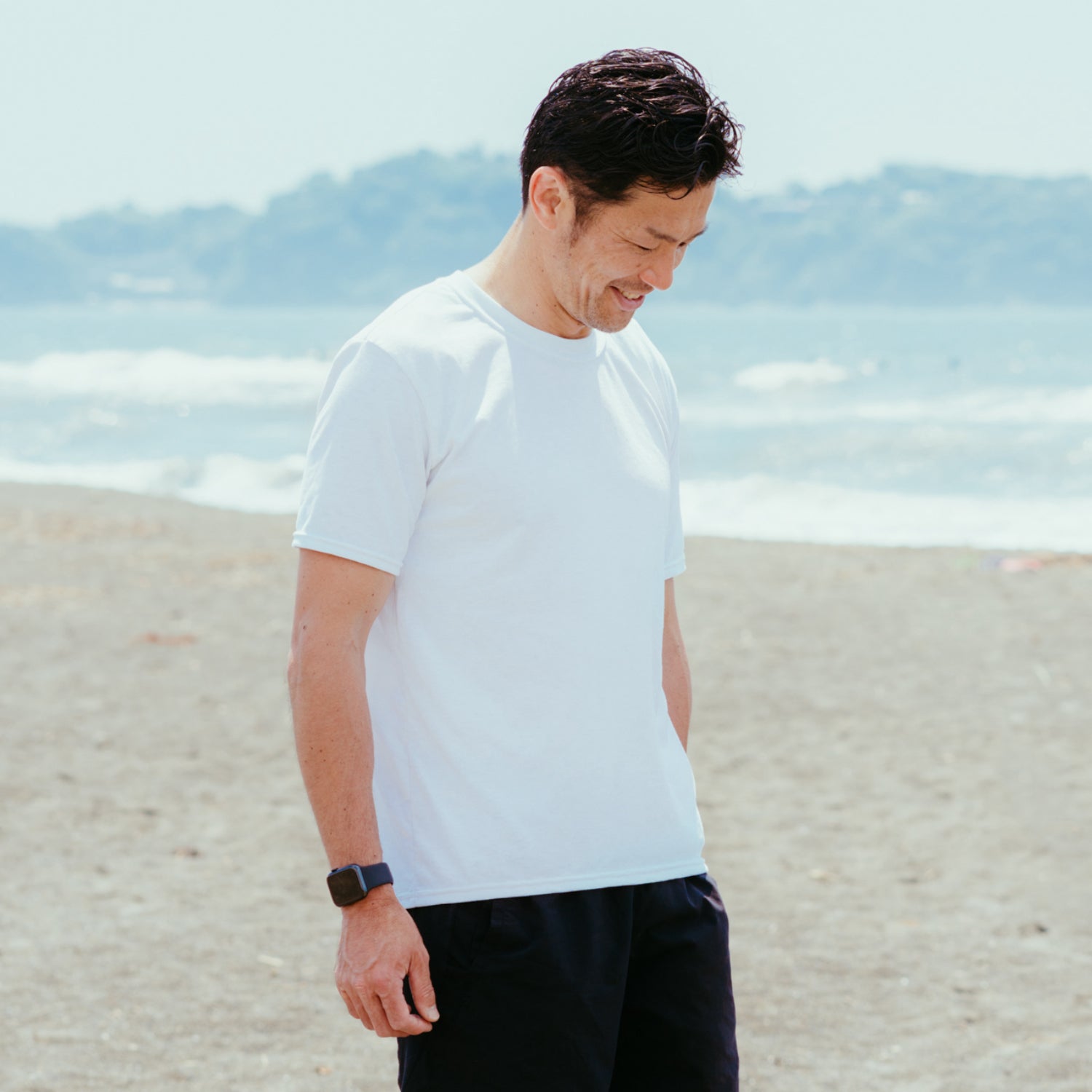 No matter how you look at it, it looks like cotton. Therefore, it has the perfect look and feel as an everyday T-shirt. However, it is actually 100% (recycled) polyester, and has excellent UV protection and quick drying properties even if you run and sweat. Furthermore, it is made from polyester that can be recycled many times, so it is very sustainable. And the surprisingly smooth feel and texture will make your running comfortable and enjoyable no matter how much you sweat, creating the ultimate everyday experience.