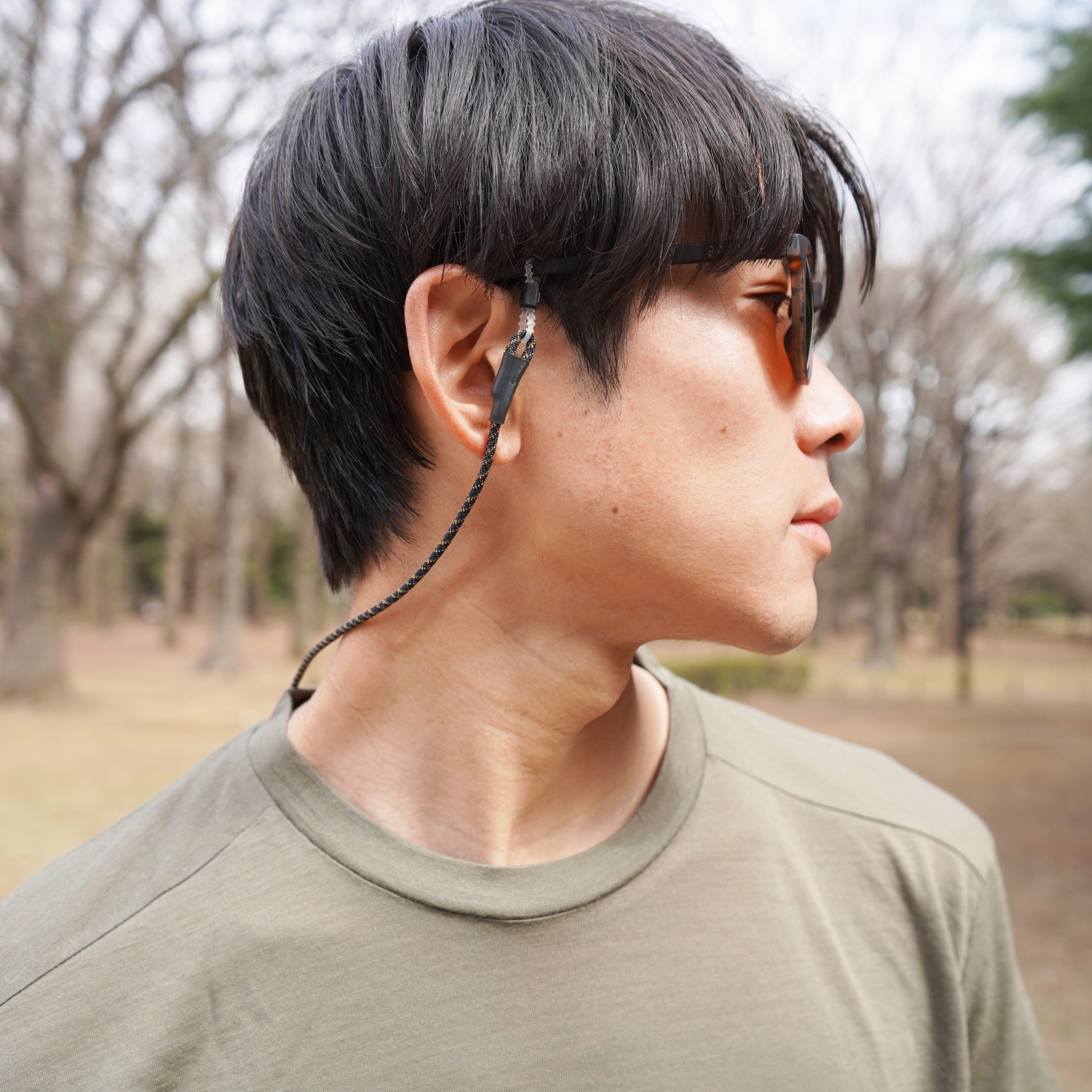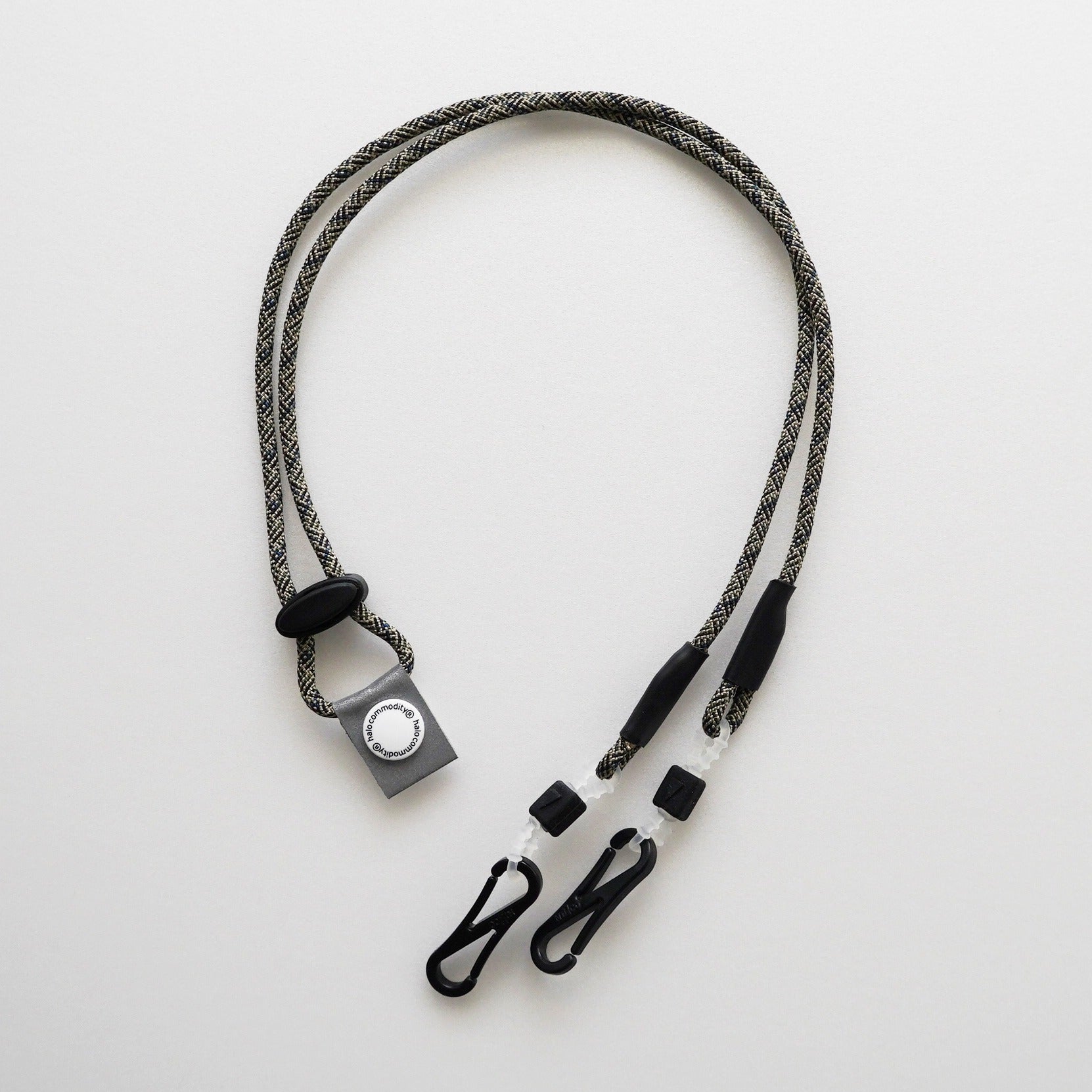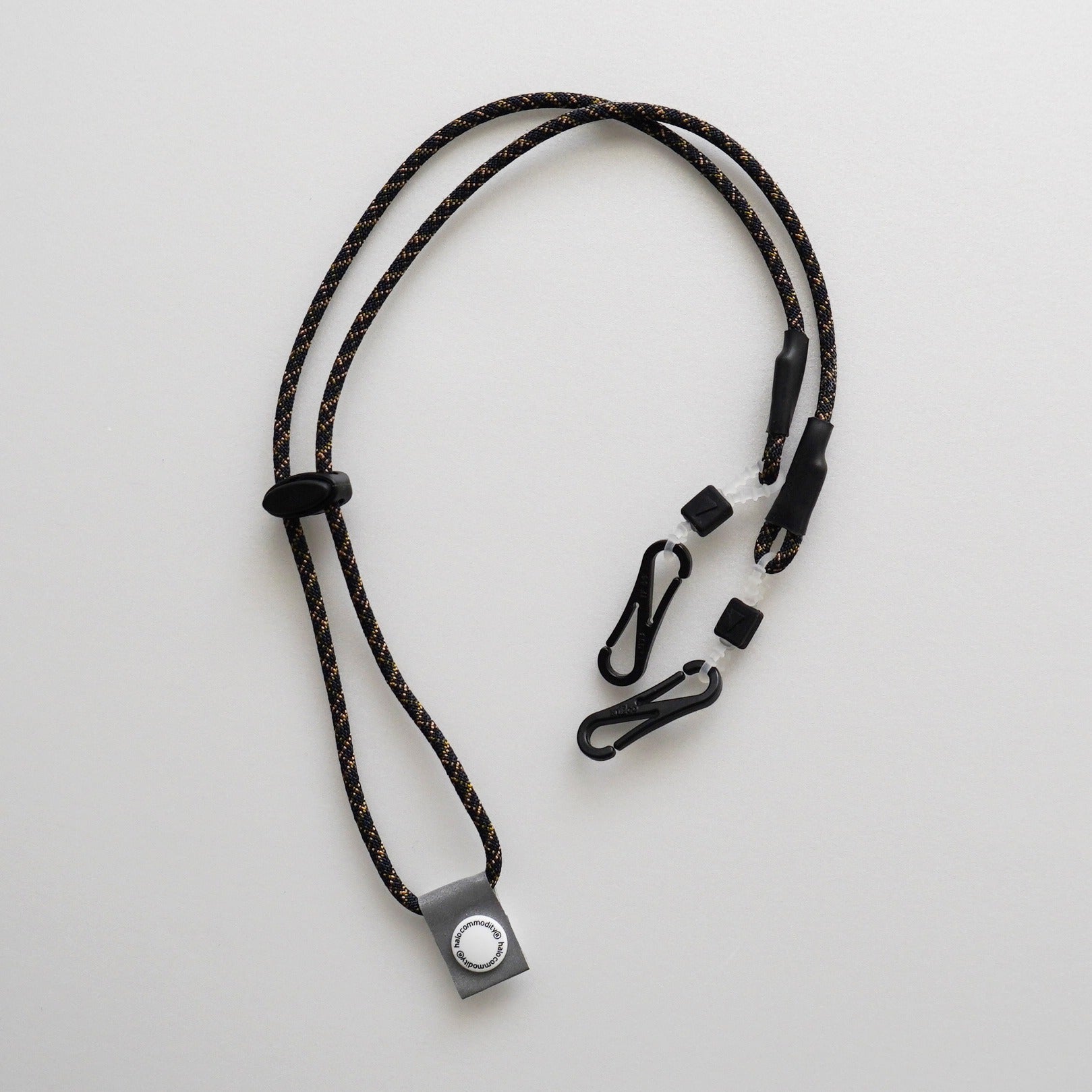 The parts that attach to the temples of glasses and sunglasses are also original to Halo Commodity and have been reinforced for durability. They can be adjusted to fit temples of various thicknesses.