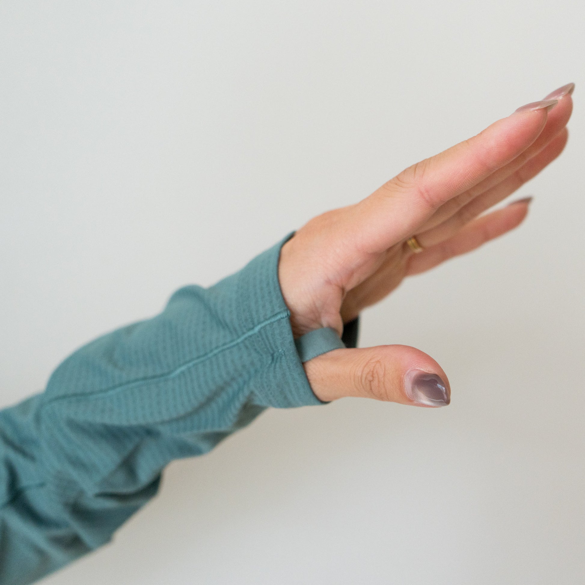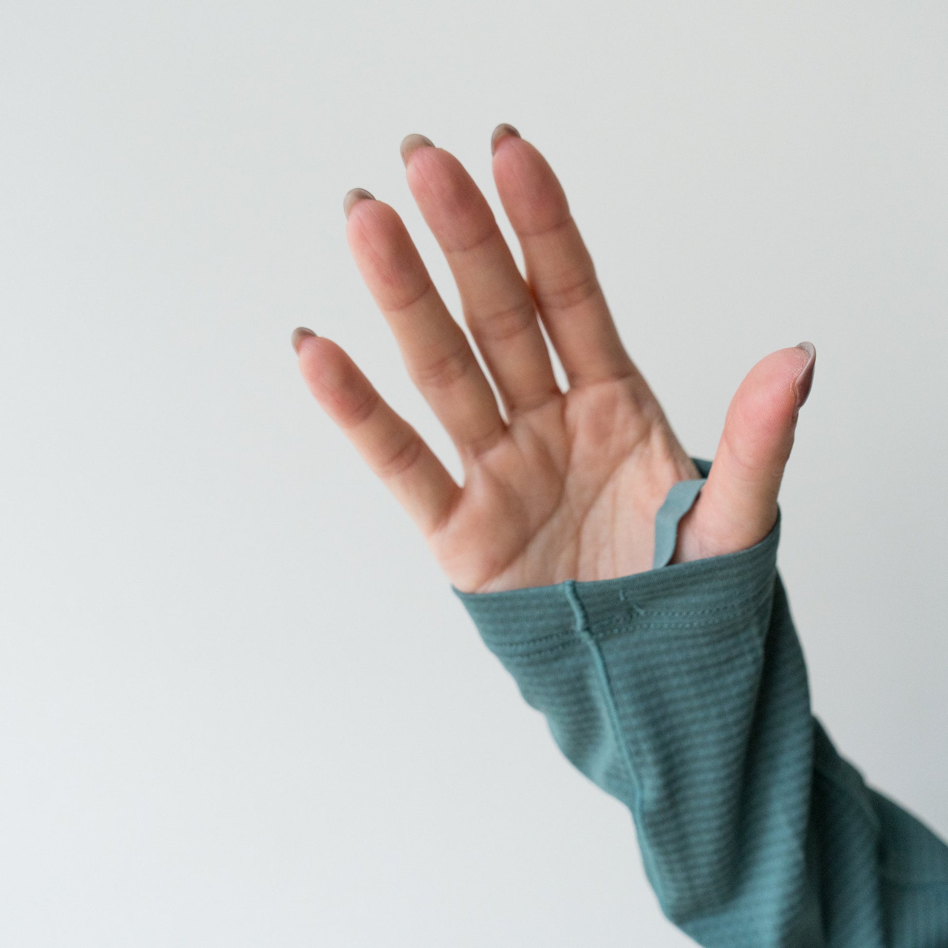 袖口の裏には伸縮性のサムループ(親指をかけておくループ)が付きます。
