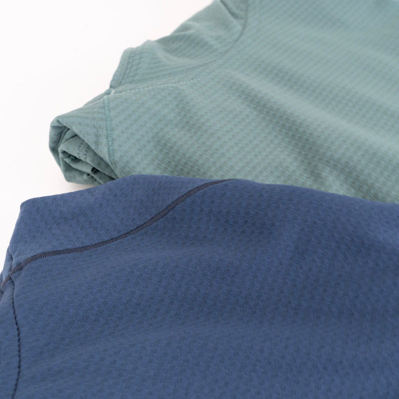 防臭加工を施したメッシュ構造(85gsm)のMotiv™ Aeroシングルジャージ素材は、軽量で吸汗速乾性に優れた素材。