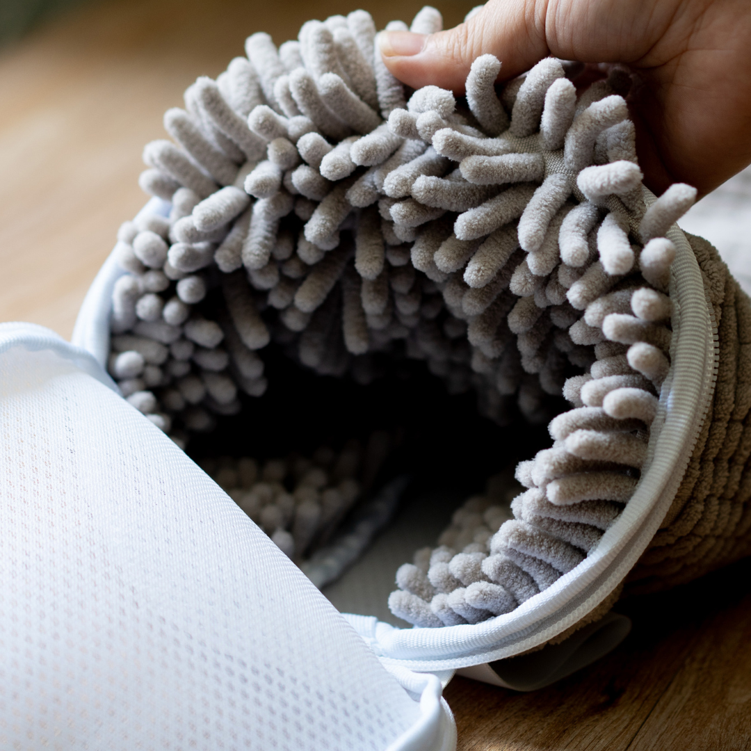 たくさんの毛足が靴の表面をゴシゴシ擦って綺麗にしてくれます。モコモコで厚みがあるから、洗濯中に靴にかかる衝撃も和らげてくれます。