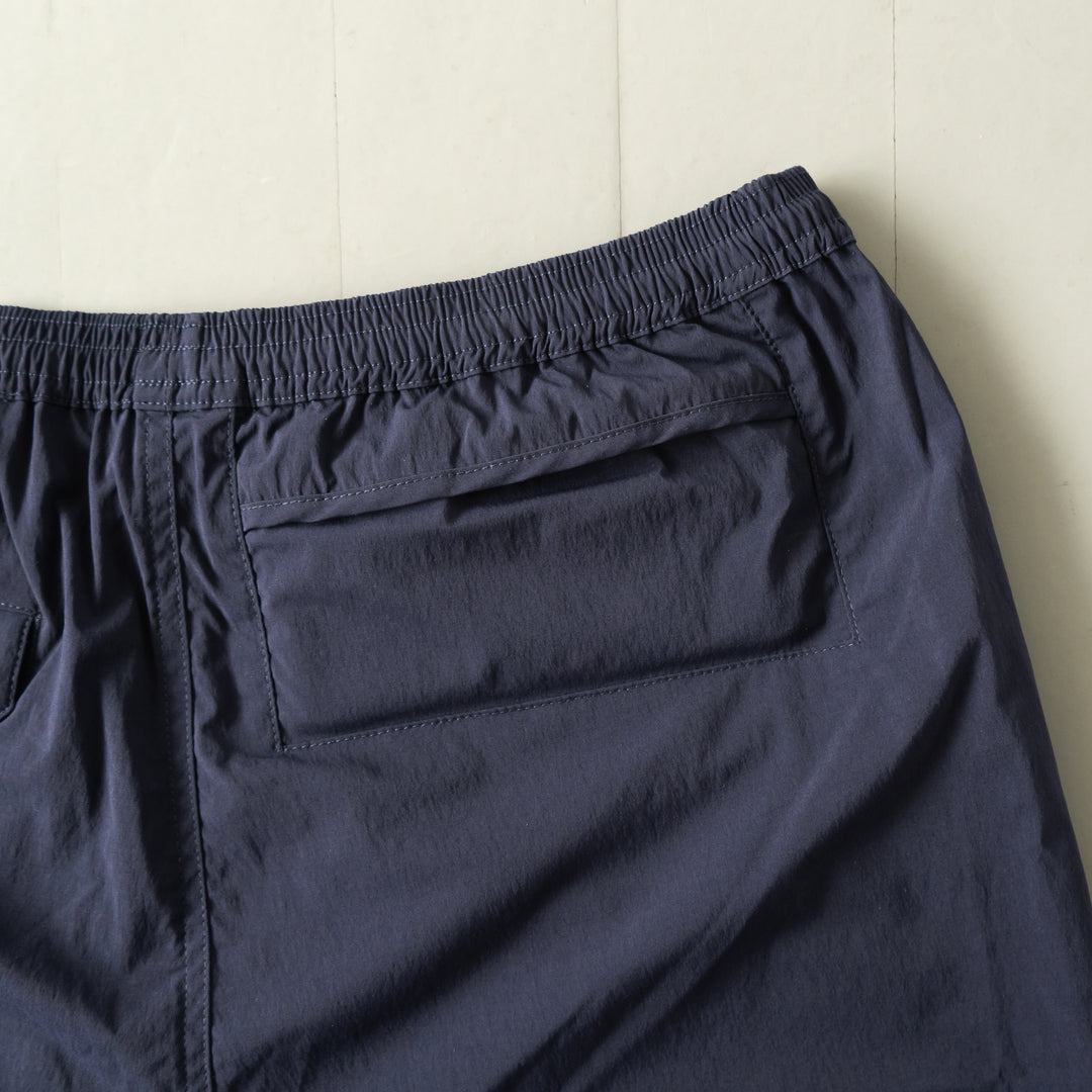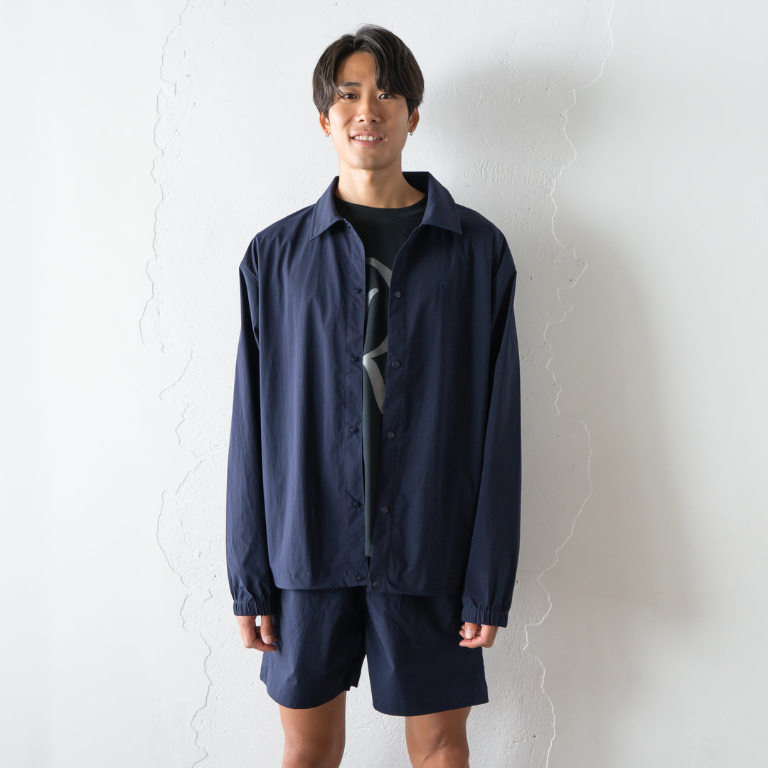 シボ感のある軽量ナイロン素材を採用。表情のある素材なのでツルッと見えず、カジュアル過ぎないしっかり感もあるセットアップに。