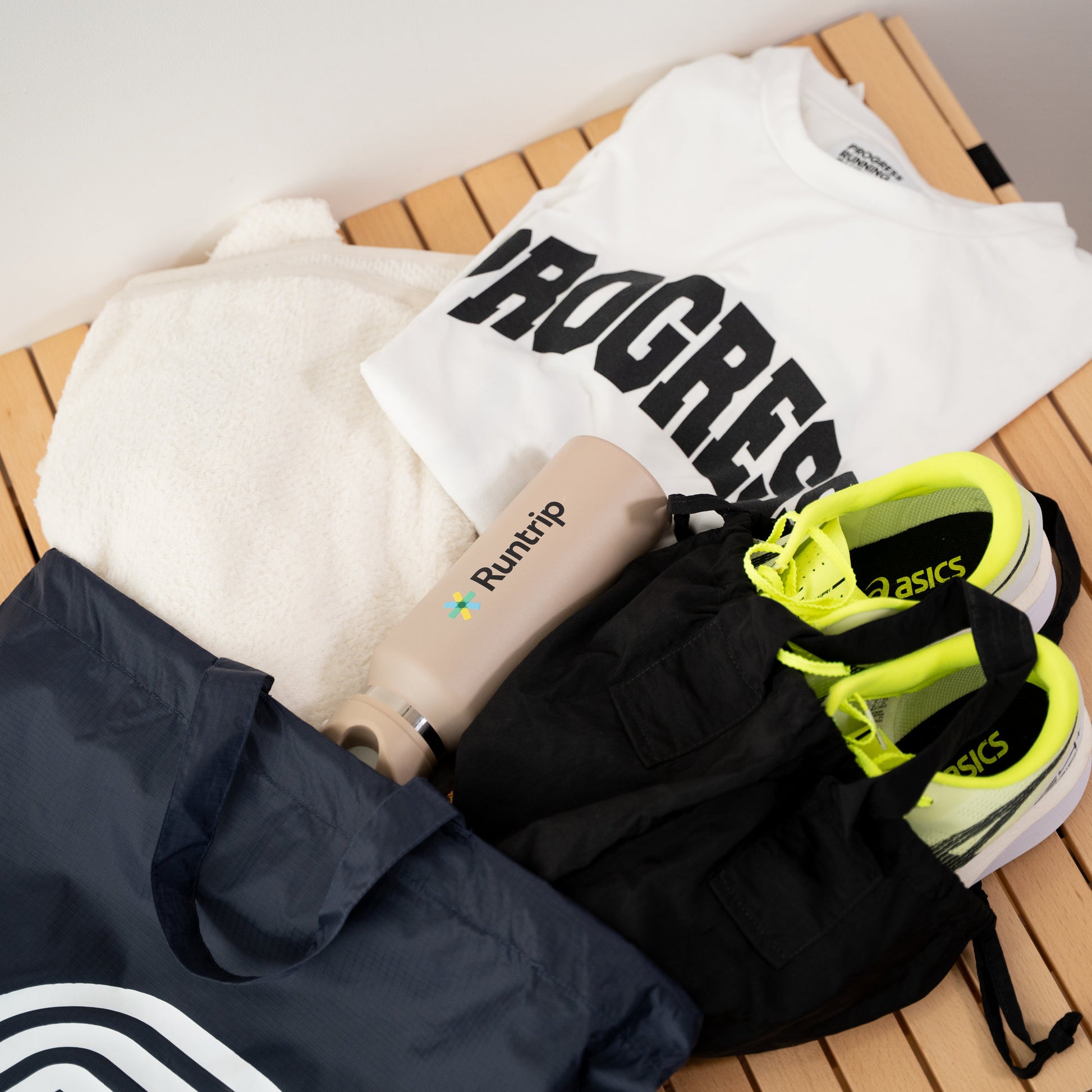 薄手で軽量、耐久性もありマルチに活躍する、Runtripオリジナルの2wayナップサック。