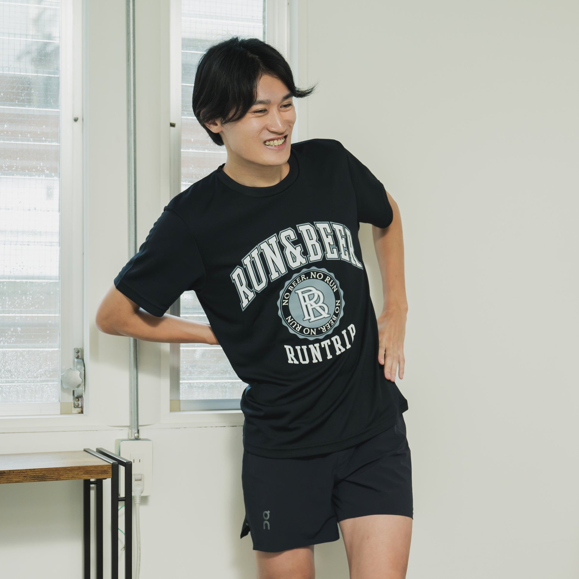Run & Beer College Design DRY Tee (Black / Gray & White)
