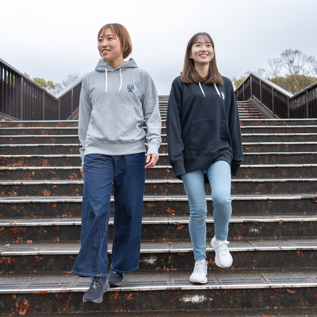 日常とランニングシーンをシームレスに繋ぐ。食べていても飲んでいても、寝ていても走っていても。オールラウンドで活躍するフーディは男女兼用、後ろ身ごろが長いロングテールであらゆる人の体型にフィットするパーカーです。袖と裾のリブを長めにした至高のシルエット、ボディデザインとなっています。