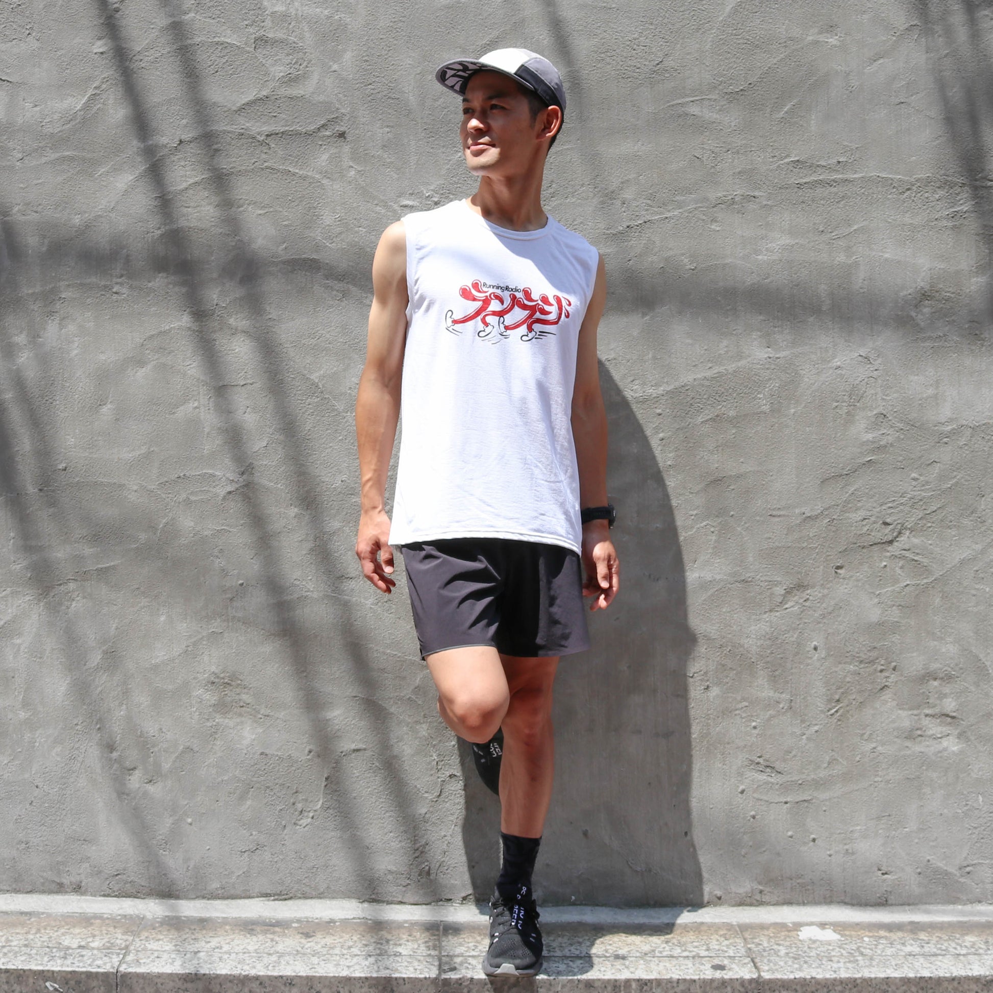 The waist is a modern style that stretches straight down. Furthermore, the hem is longer at the back than at the front. This creates an exquisite silhouette when worn. Many runners store drinks and other items at the back of their waists, especially when running, and the longer hem hides this bulge beautifully. Conversely, if you store items at the front, the hem is slightly shorter than the back, making it easier to take them out. This sleeveless T-shirt is made by runners, for runners.