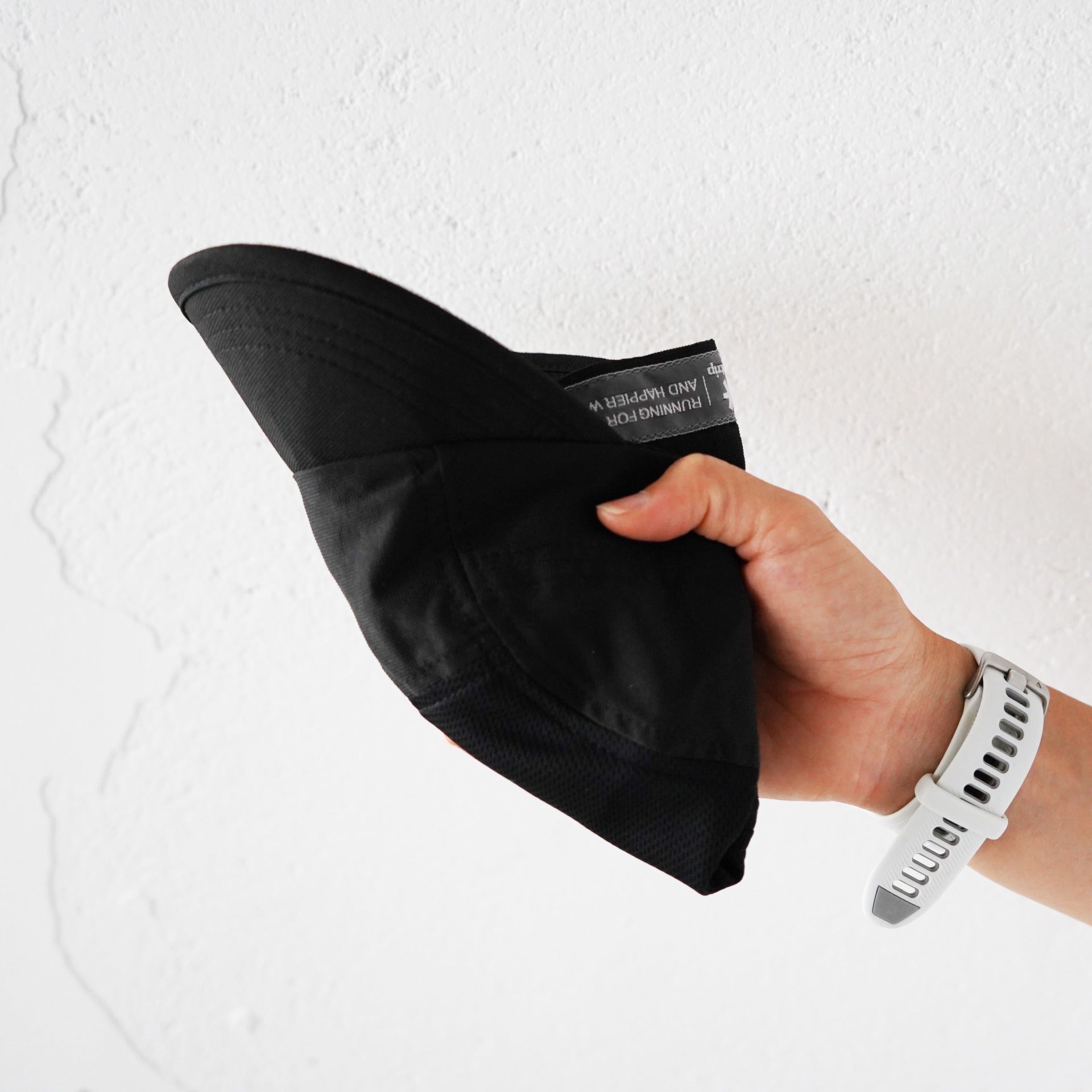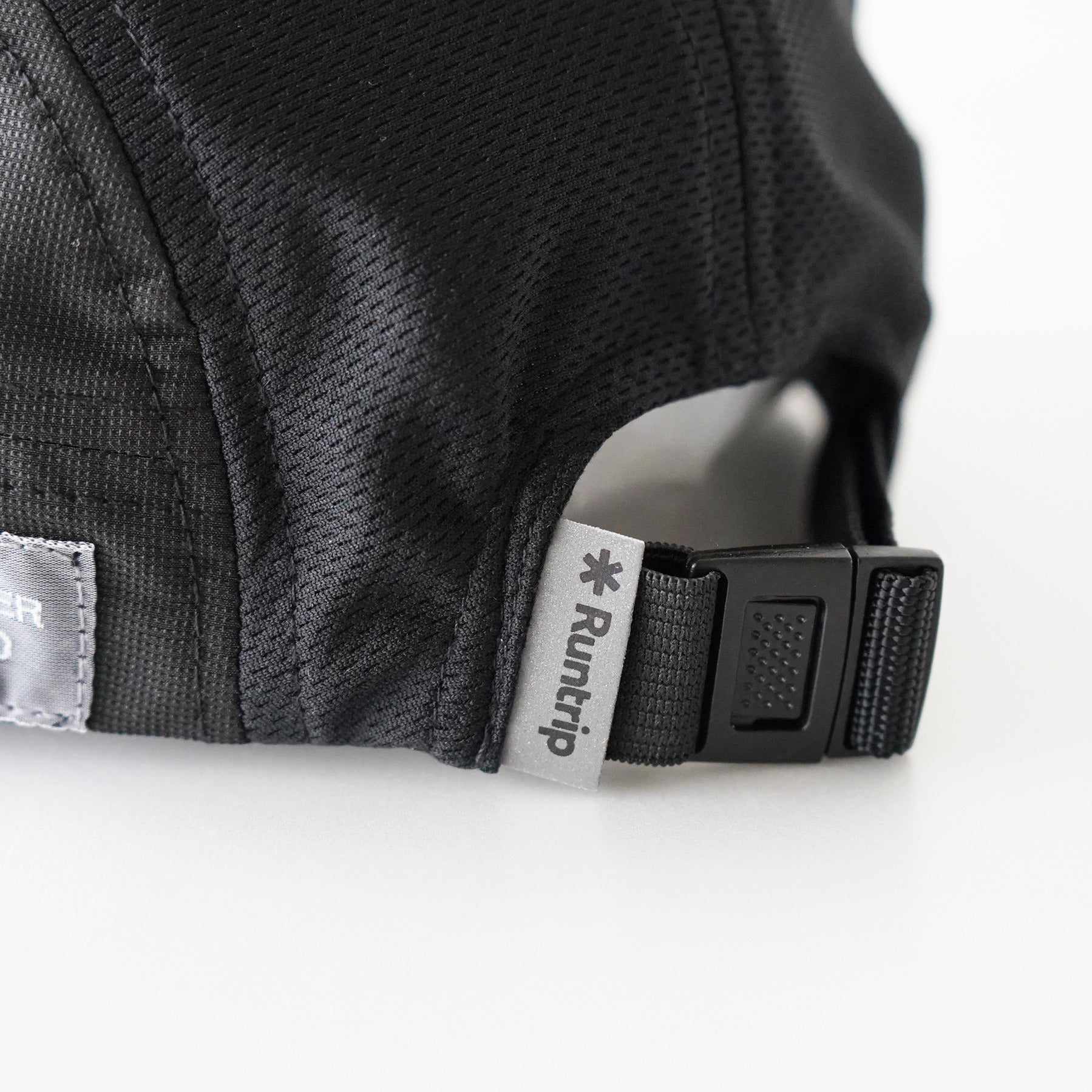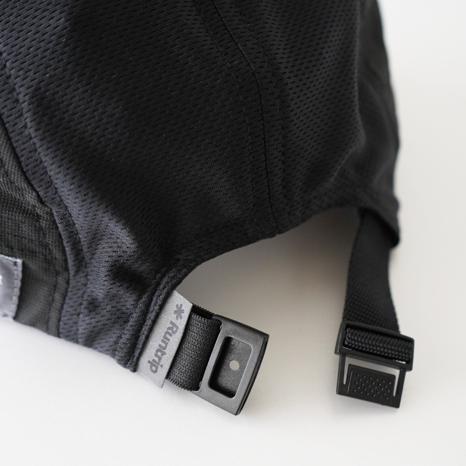 The buckle has a reflective tag with the Runtrip logo printed on it, so you can enjoy night runs even with an all-black cap.
