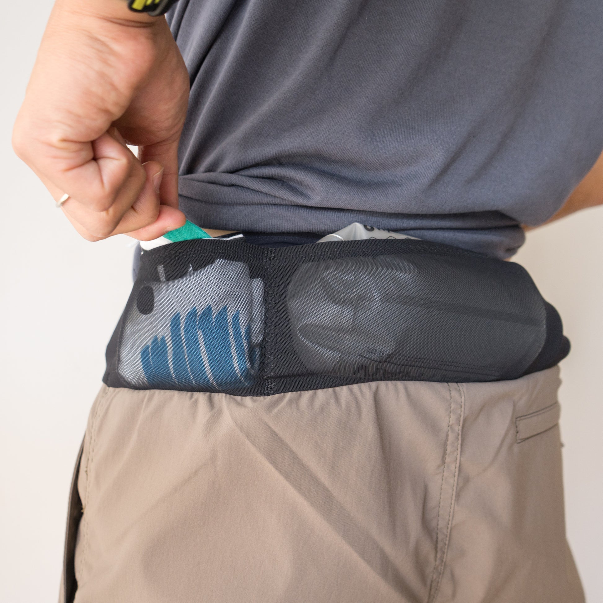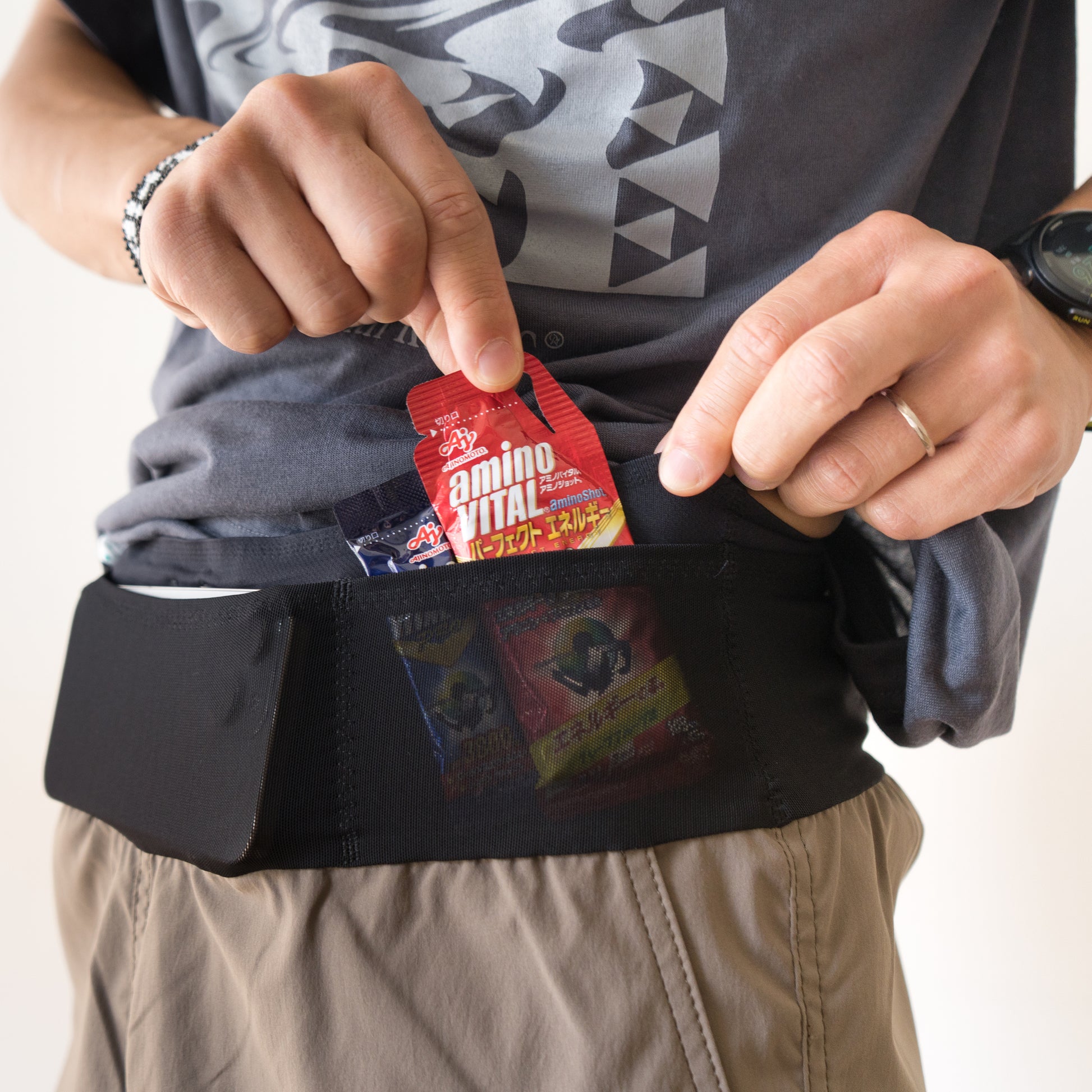 ウエスト部はドライタッチなトリコット素材を採用し、前と後ろに合計6つのストレッチメッシュポケットを装備。