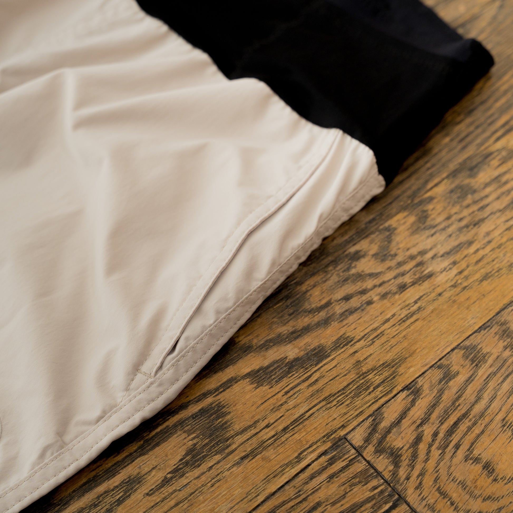 スマートフォンや防寒用のジャケットなどが収納でき、パックを背負う必要がないシチュエーションで重宝します。裾口はシャーリング仕様で軽快な足さばきをサポートします。