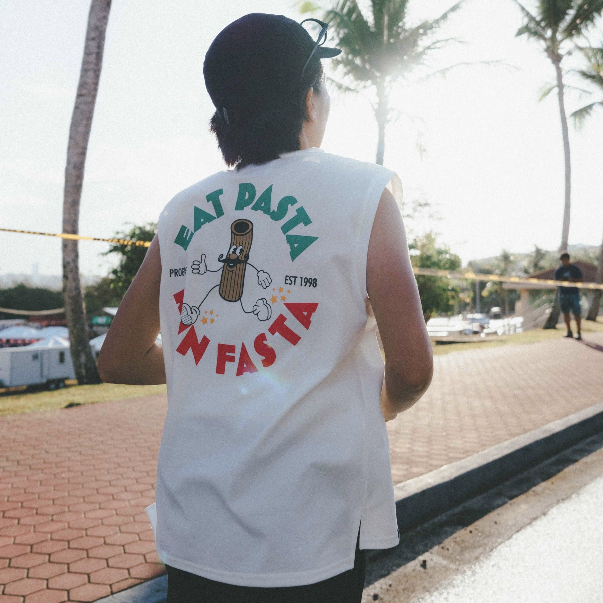 【展示サンプル】PROGRESS RUNNING CLUB Eat Pasta Run Fasta Custom-made Sleeve-less Tee