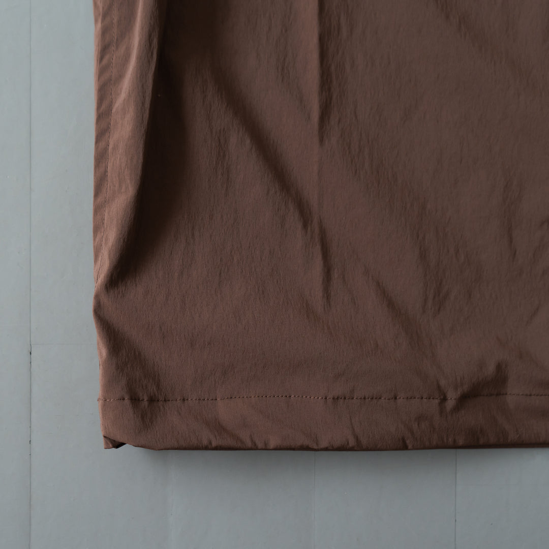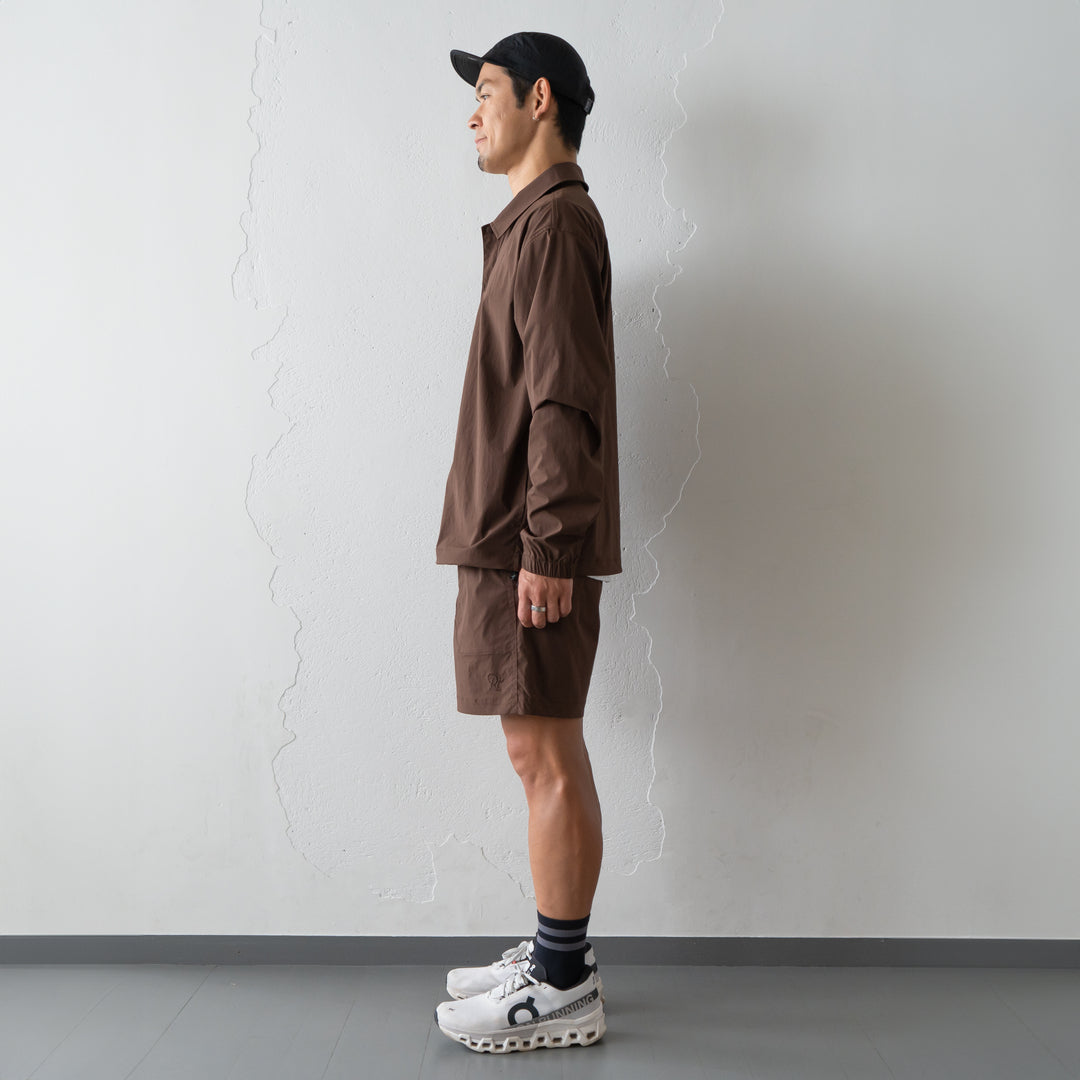 シボ感のある軽量ナイロン素材を採用。表情のある素材なのでツルッと見えず、カジュアル過ぎないしっかり感もあるセットアップに。