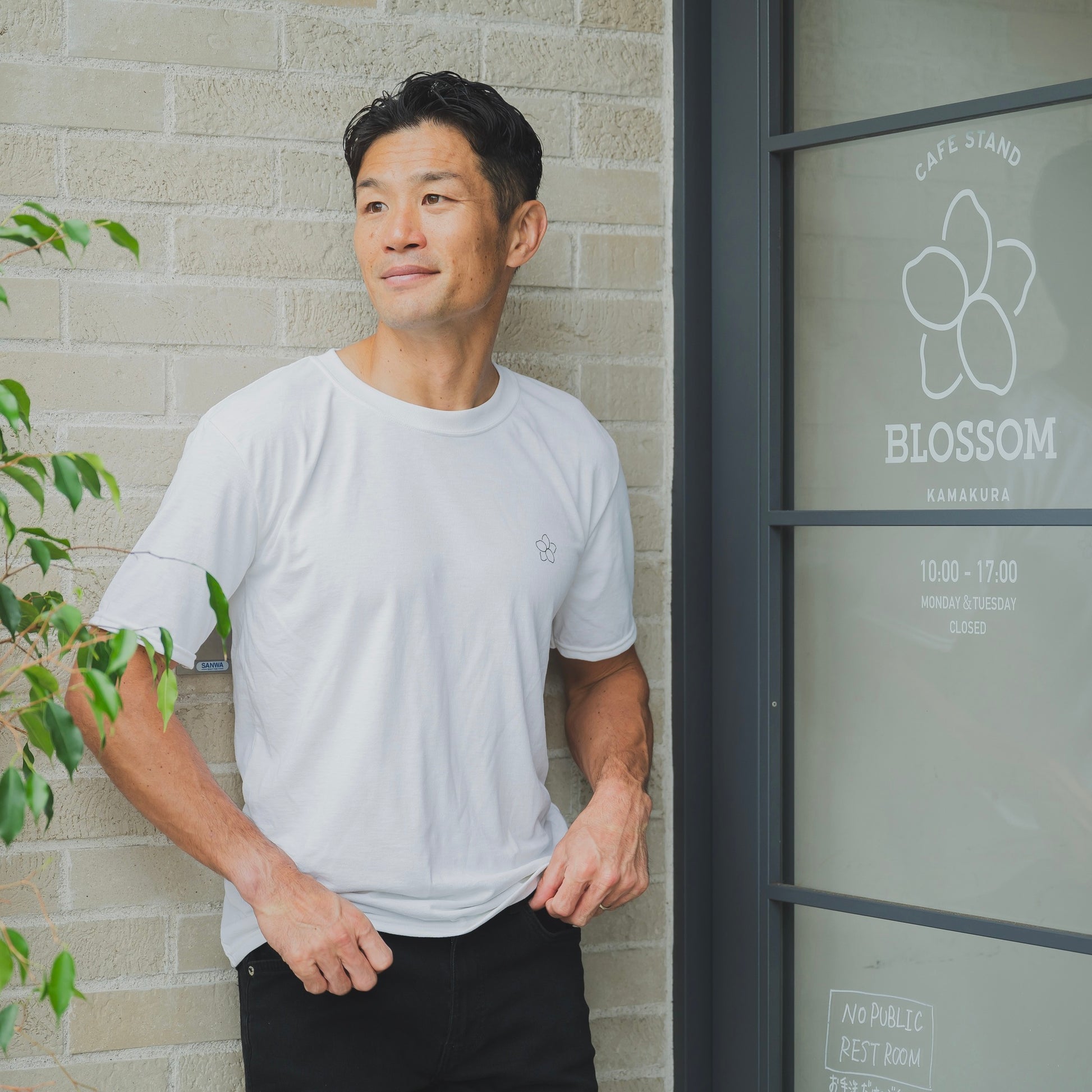 廣瀬氏が辿り着いた"発酵・甘酒の可能性"をひらくための「CAFÉ STAND BLOSSOM」のコンセプトを、Tシャツというキャンバスで今回も表現。可能な限りミニマルで、素材は確かな機能性と環境への配慮があり、何よりそれを纏う人たちが元気になれるTシャツ。