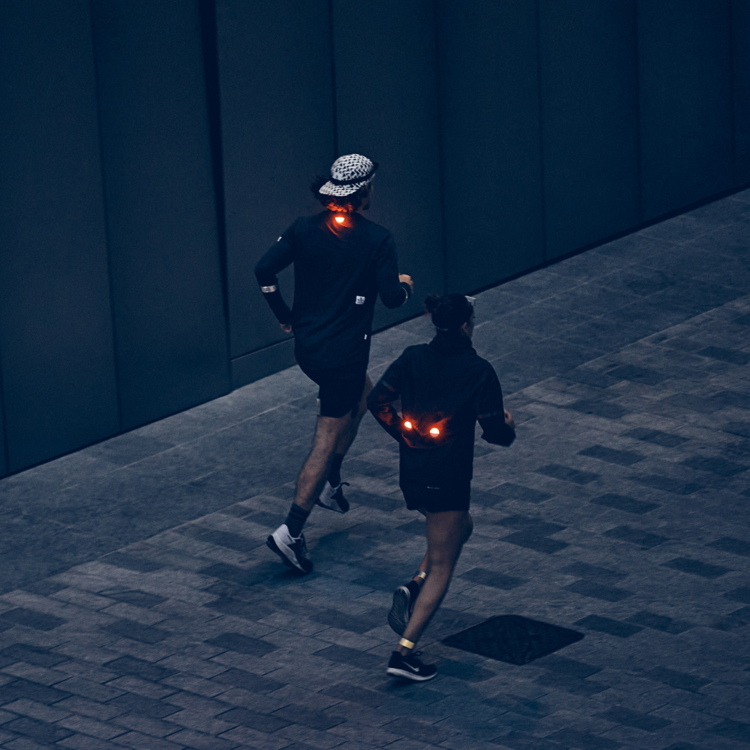 夜のランニングに最適なビジビリティアイテム、LEDライト。
