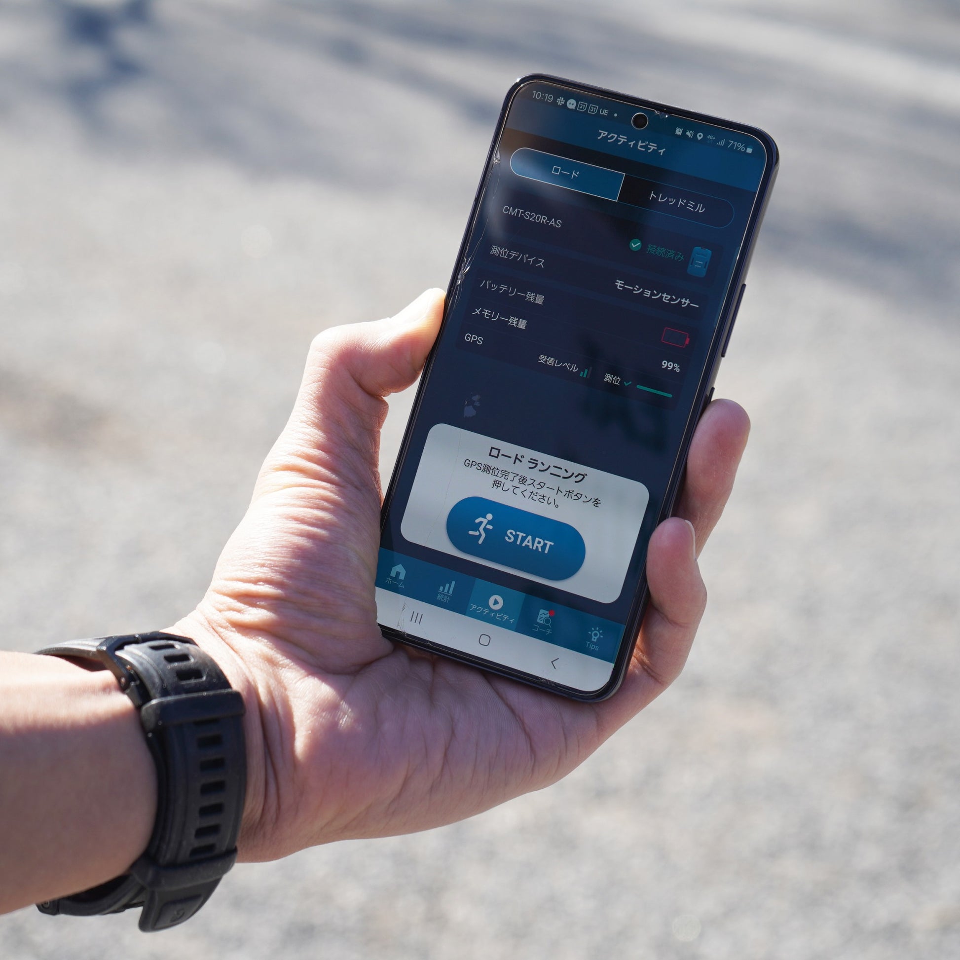 GPS+9軸センサー搭載のウェアラブルデバイスで、ランニング中の身体の動きを高精度にトラッキング。