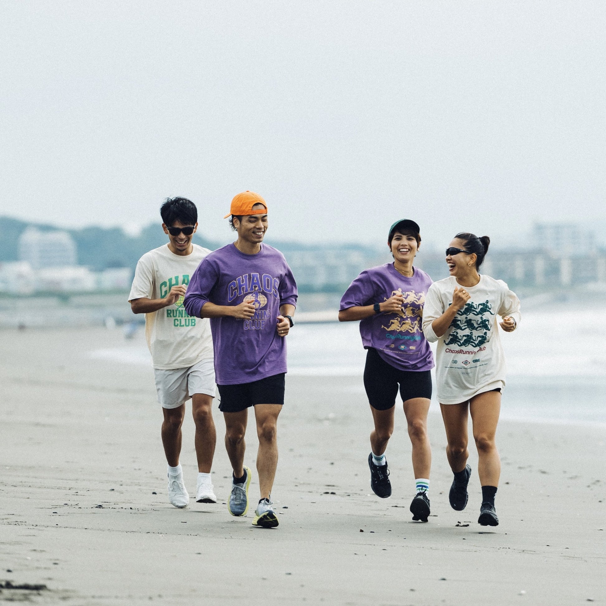 年齢も性別も、人種も超えたまさに「カオス」なランニングコミュニティとして、よく見ると犬?ガイコツ?など、様々な”Runner”をイラストで表現。