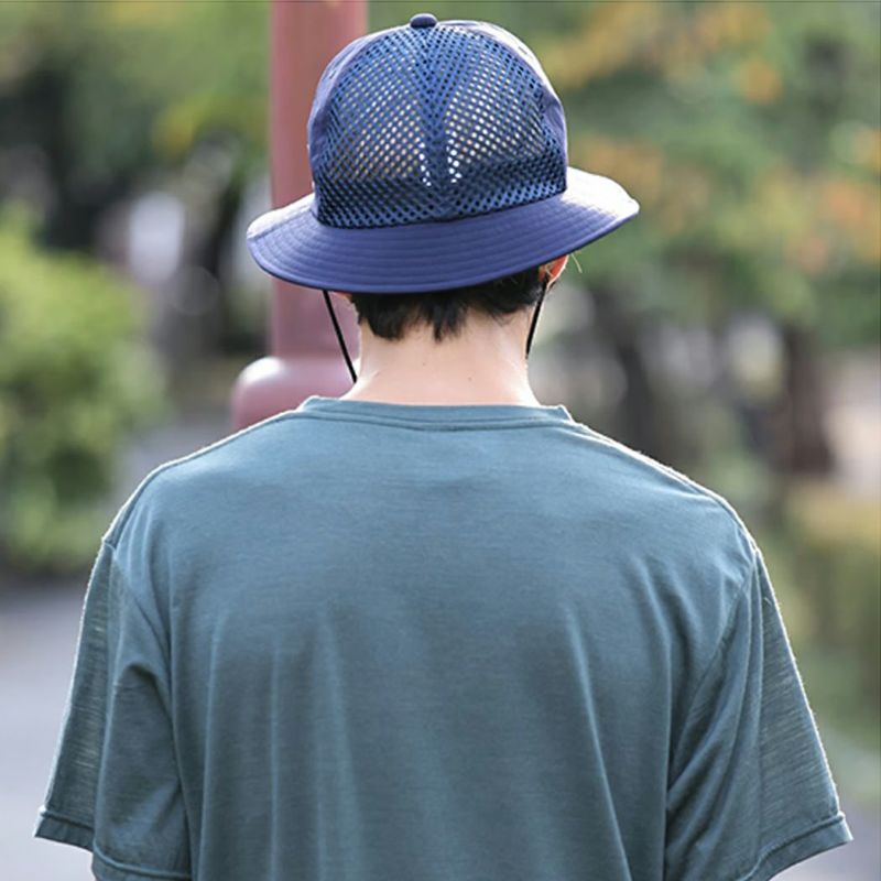 メトロハットから着想を得て6パネルで構築した、チンストラップ(顎紐)付きのランニング対応型のハット。