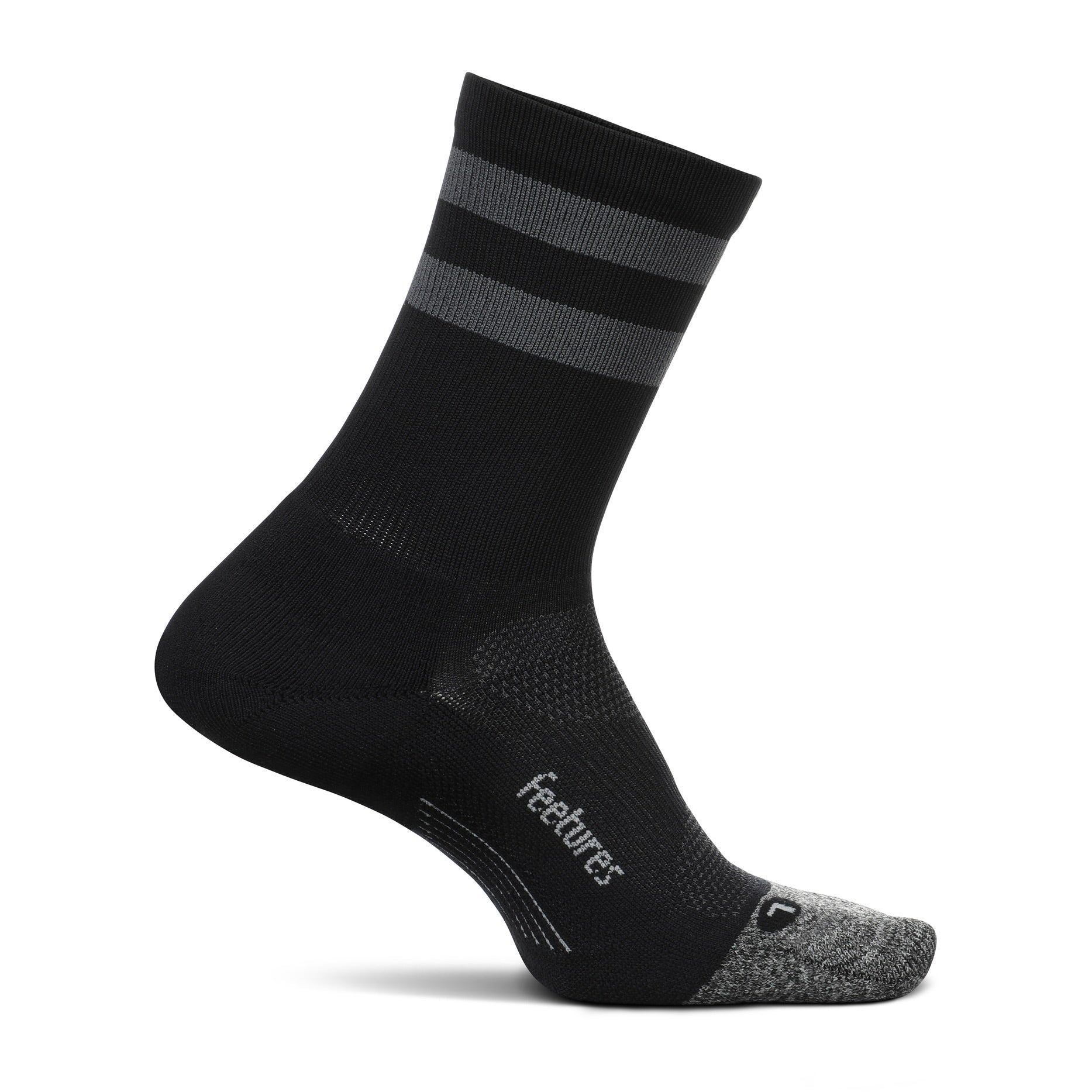 Feetures|ELITE LIGHT CUSHION MINI CREW (Black Gray High Top Stripe)