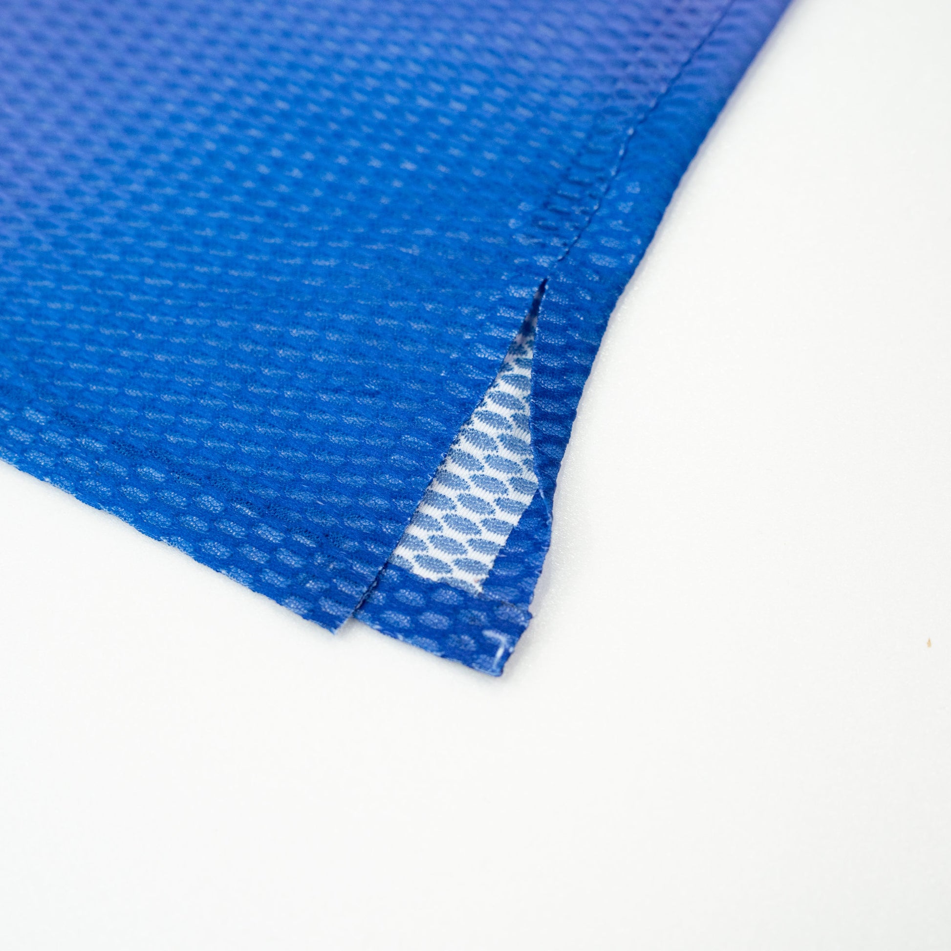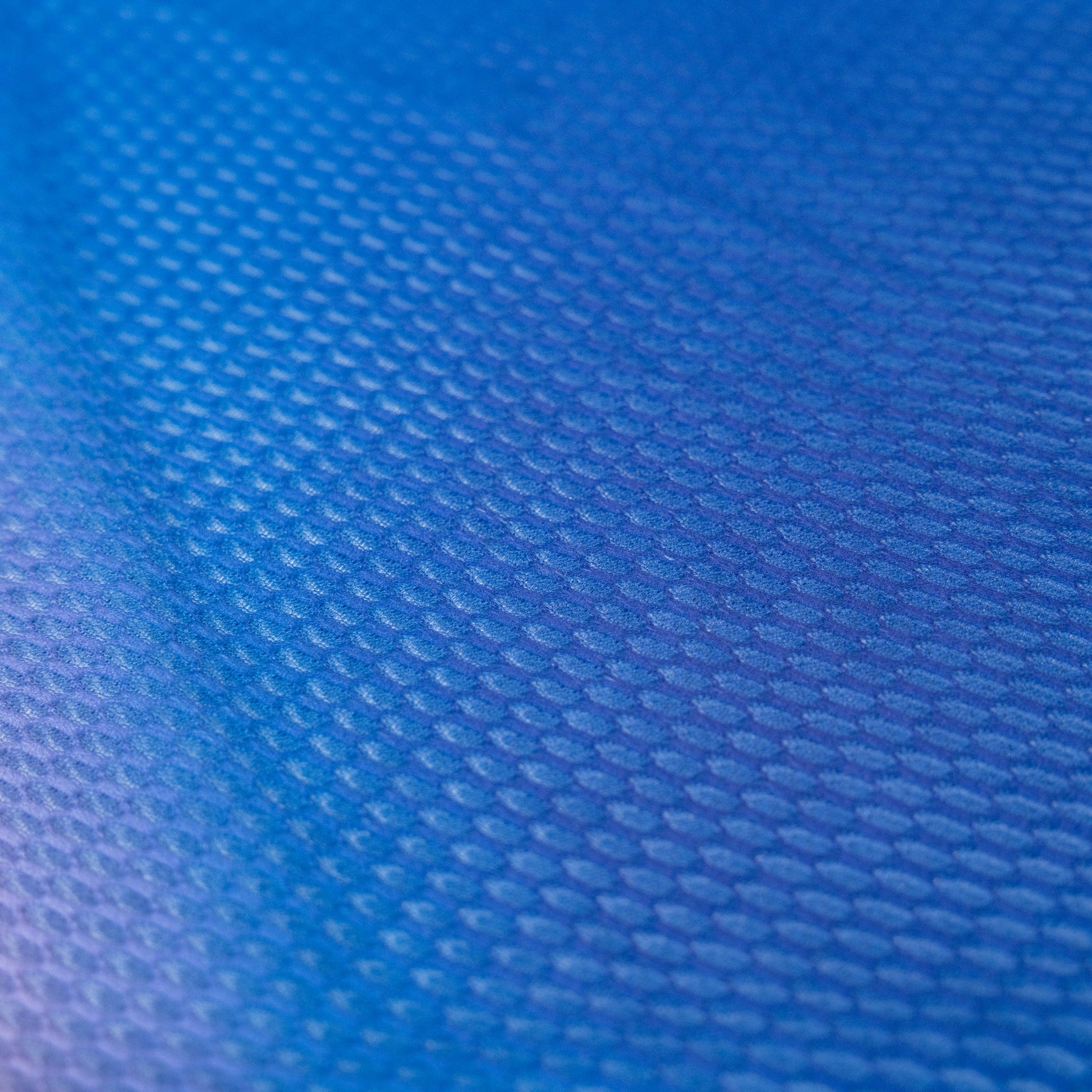 前身ごろと後身ごろで生地を切り替え、肌面に凹凸のある構造が汗によるベタつきを軽減し、常にドライな着心地をキープします。
