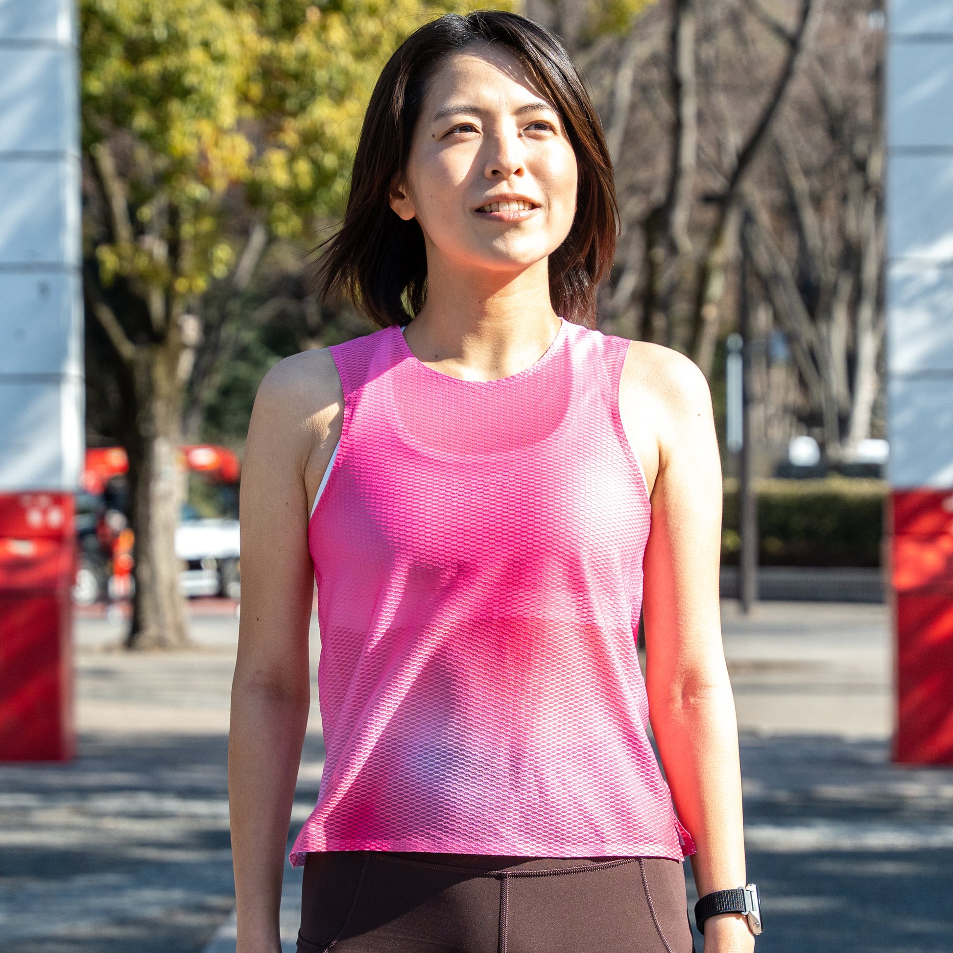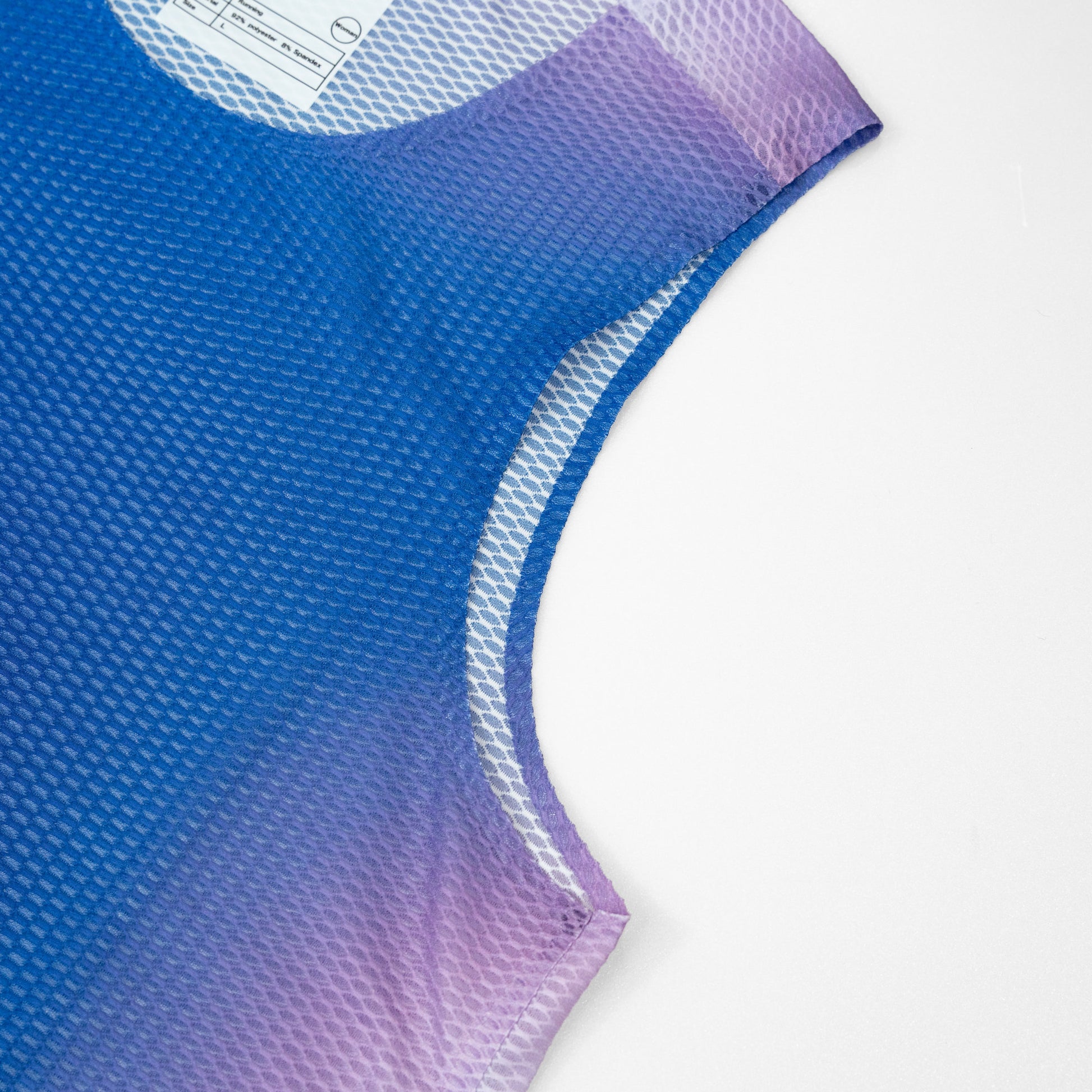 ピンク、オレンジ、パープルの華やかなグラデーションが印象的な、ウィメンズパフォーマンススリーブレス。