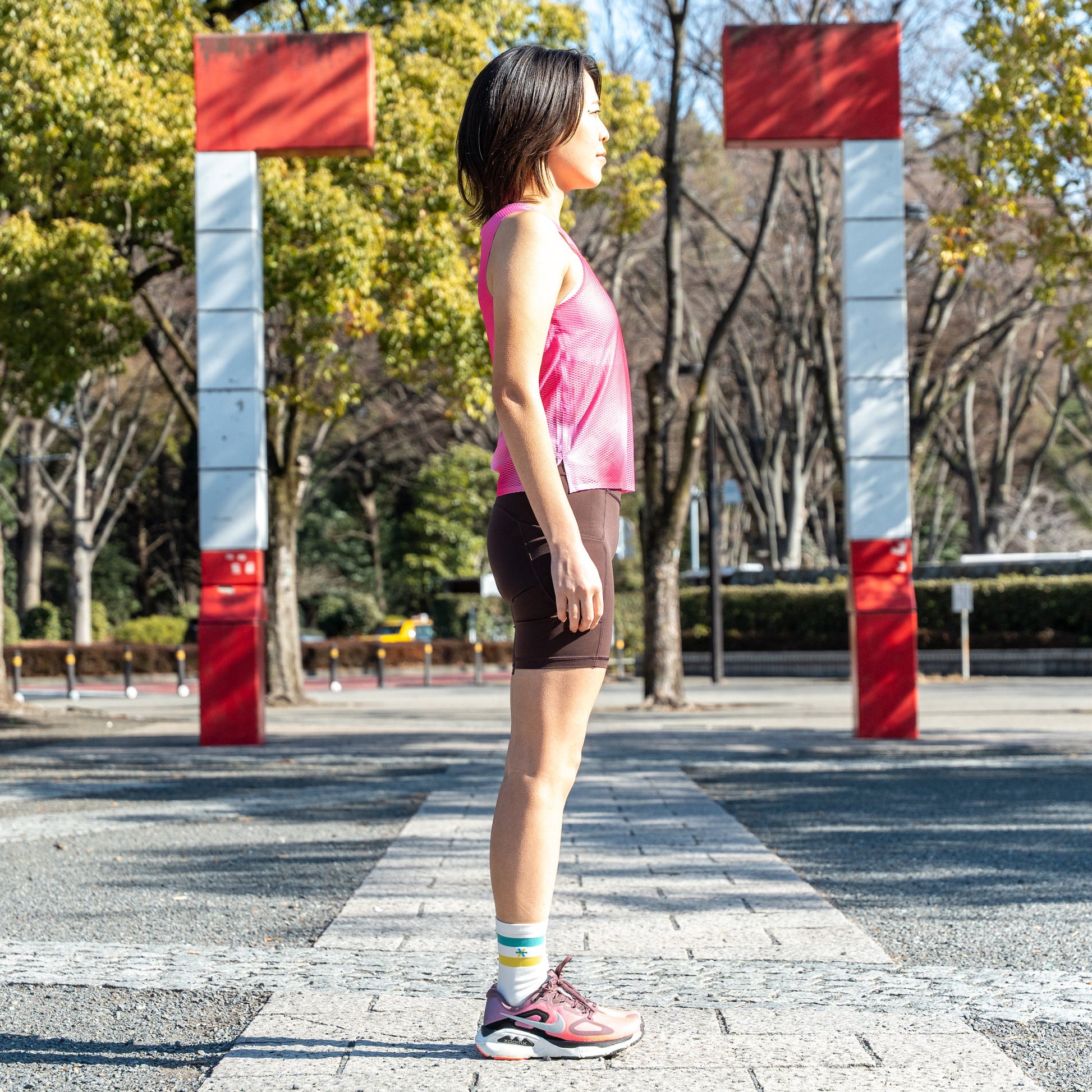 タイツにもランニングパンツにも合わせやすいショート丈設計。