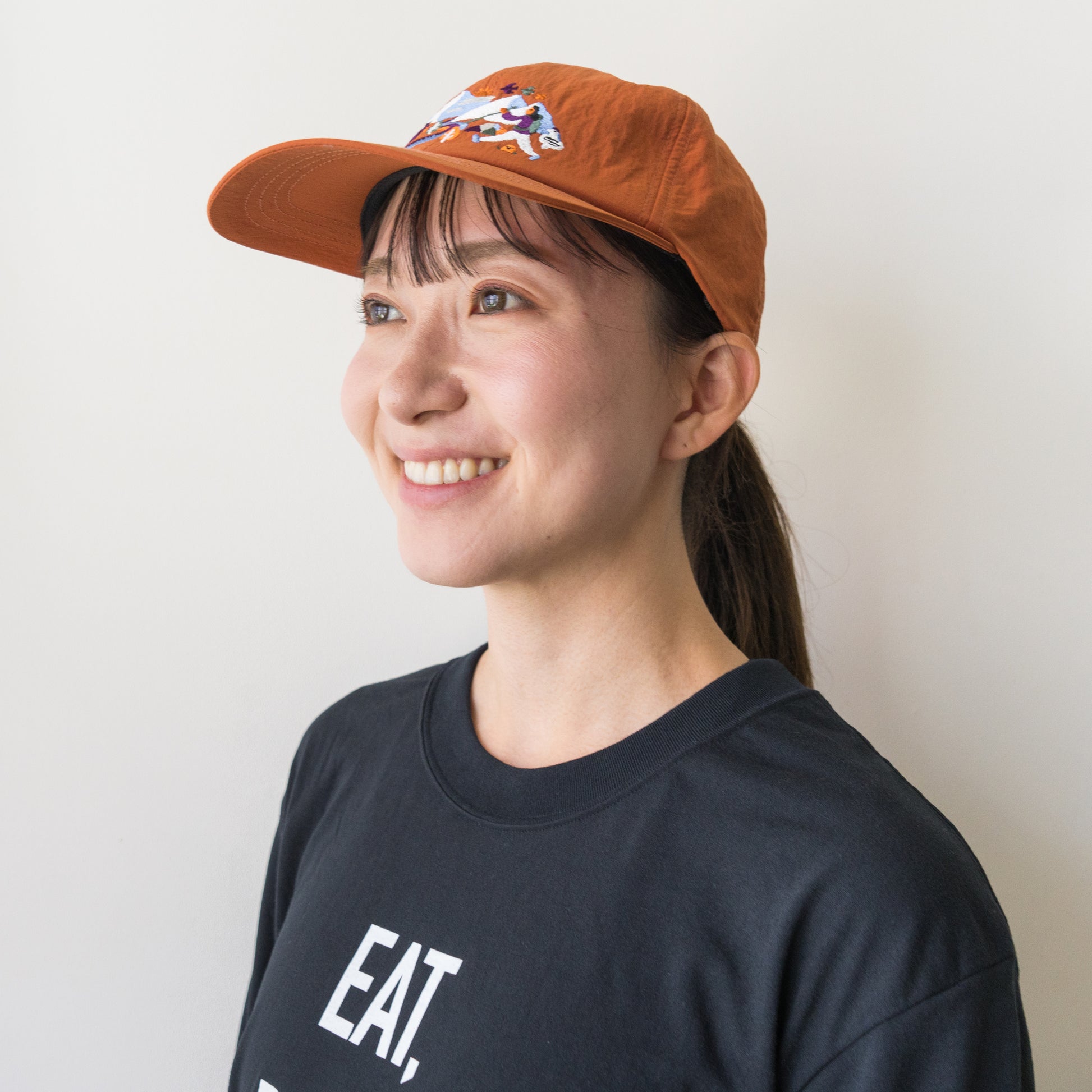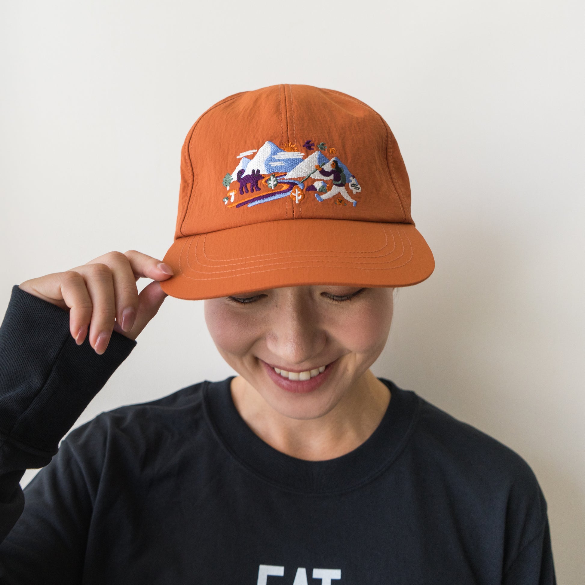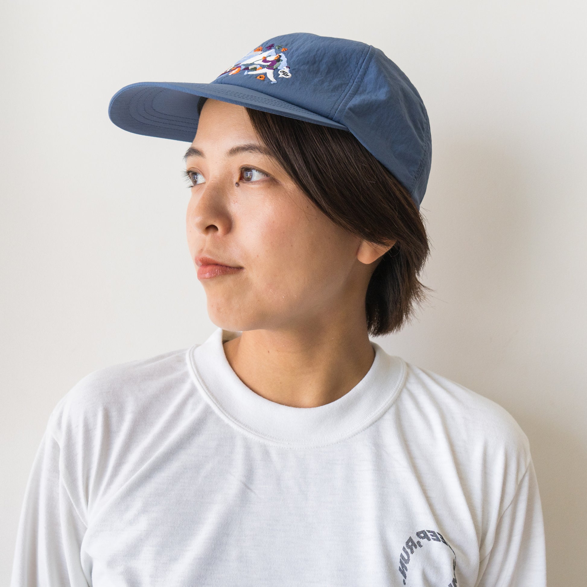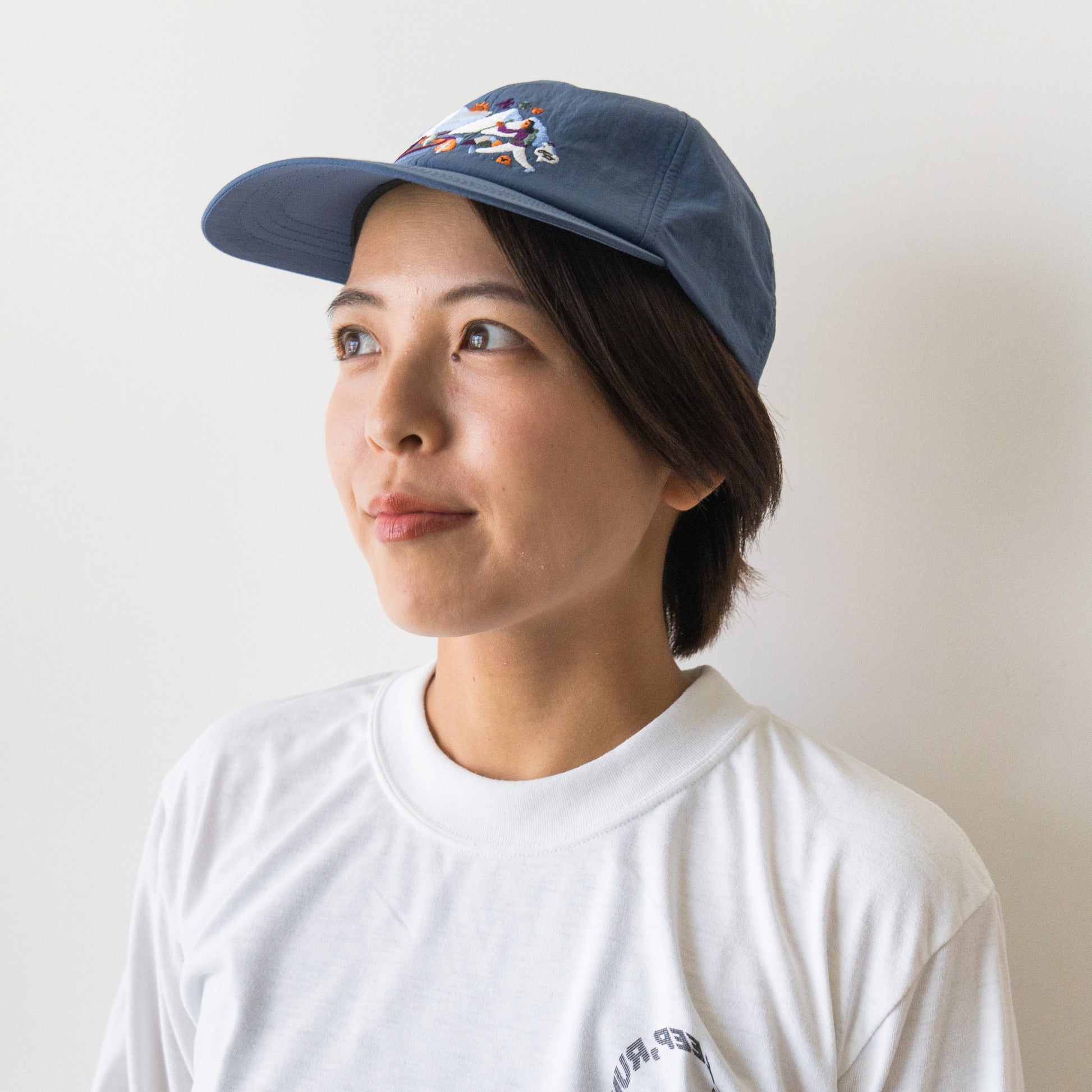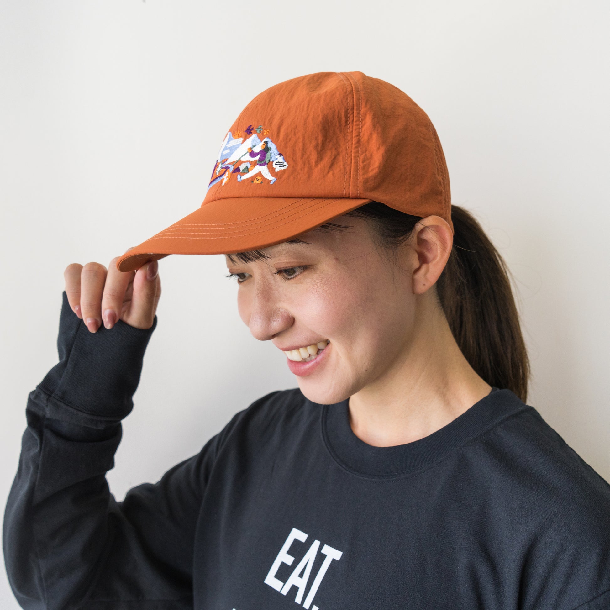 環境に配慮したサステナブルナイロン素材を採用した刺繍キャップ。