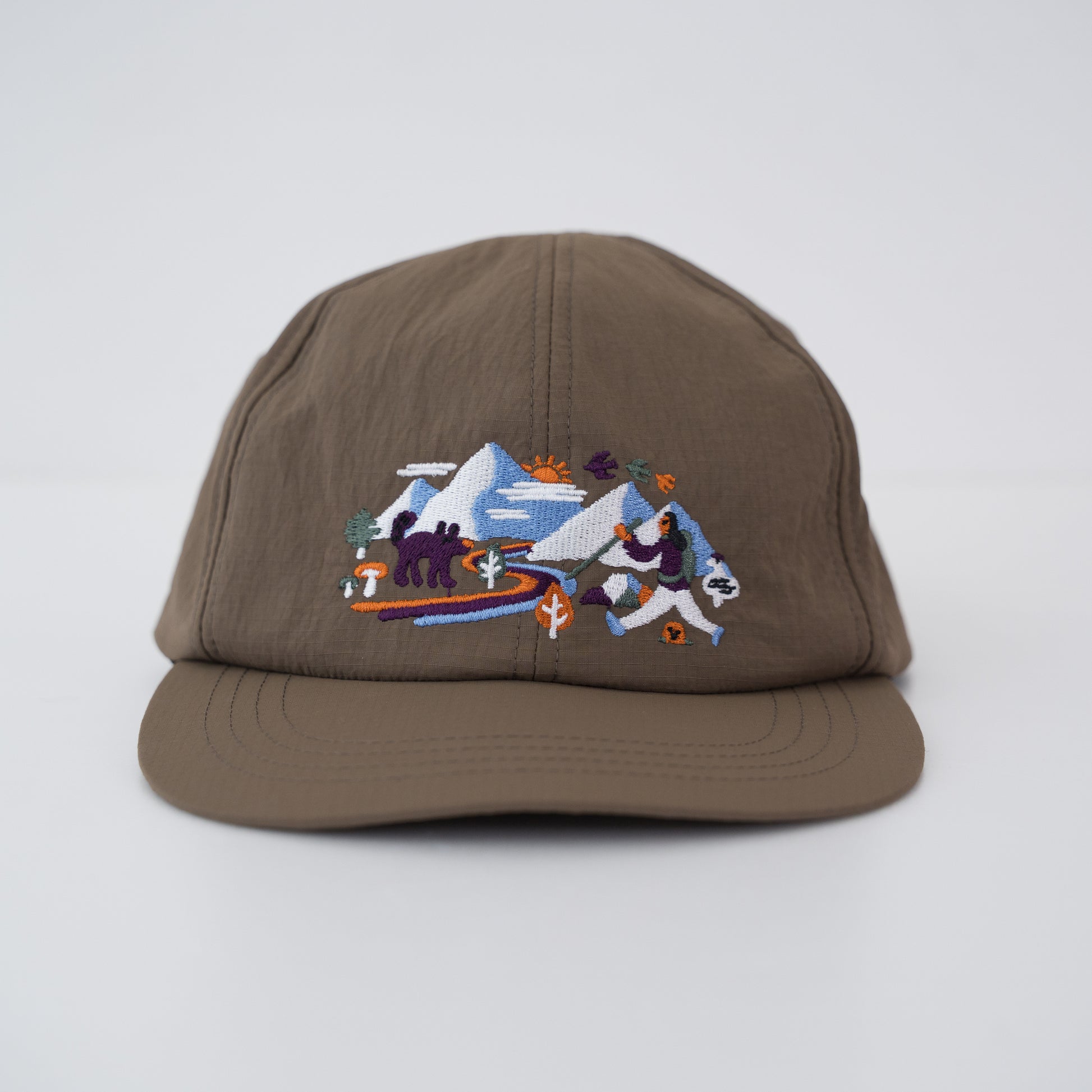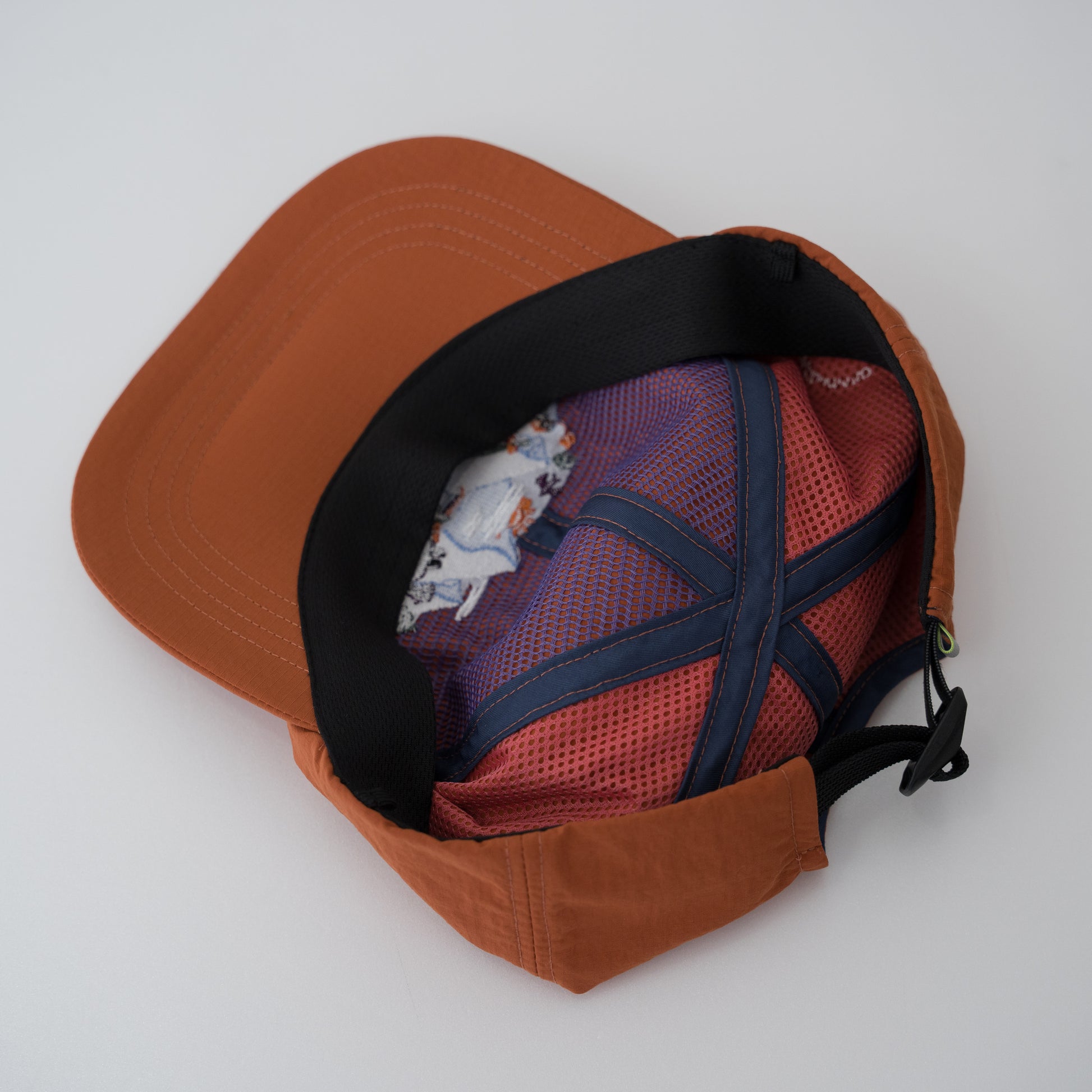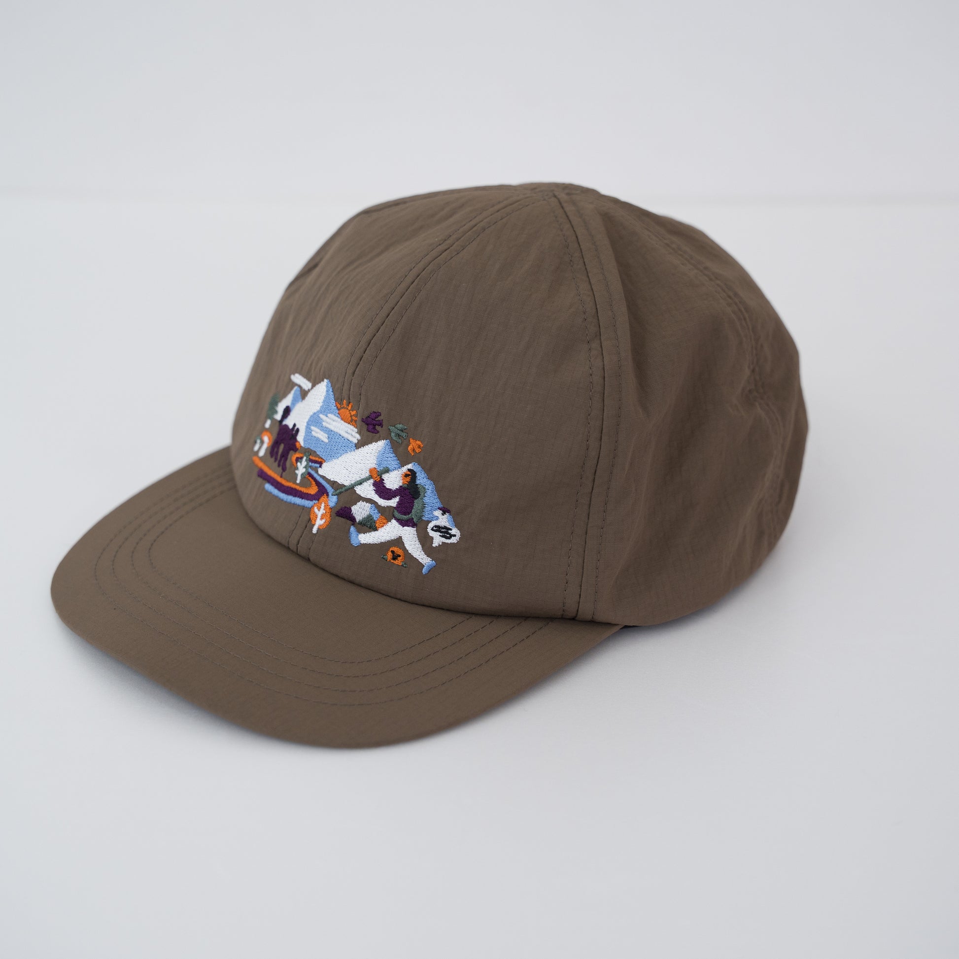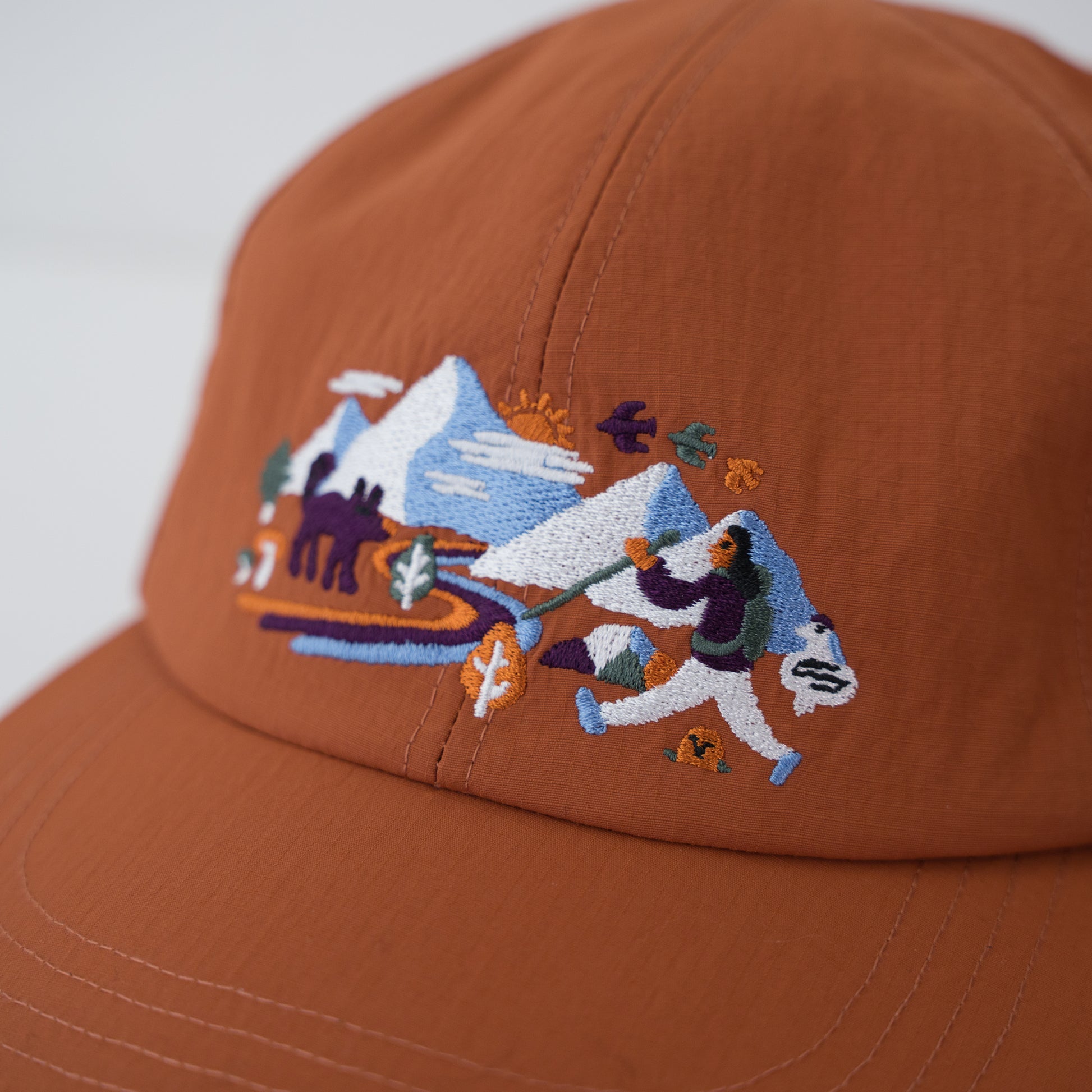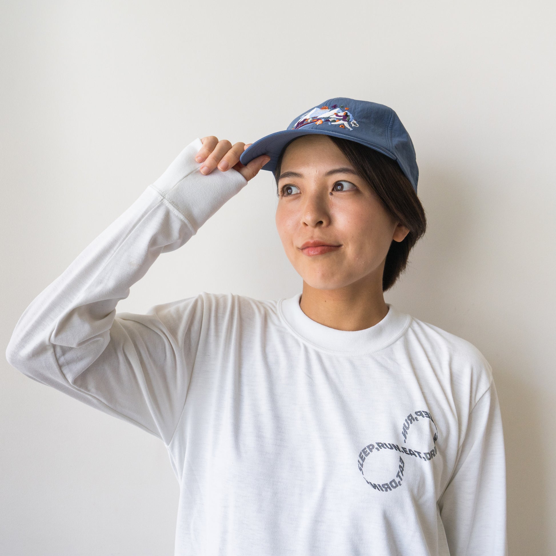 環境に配慮したサステナブルナイロン素材を採用した刺繍キャップ。