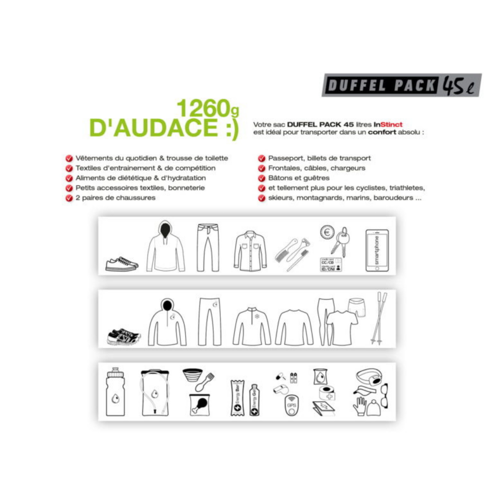 「DUFFEL PACK 45L」は、INSTINCTのDNAである「機能性・快適性・アクセスのしやすさ」をそのまま形にした、これまでにない究極の45L多機能ダッフルパック。