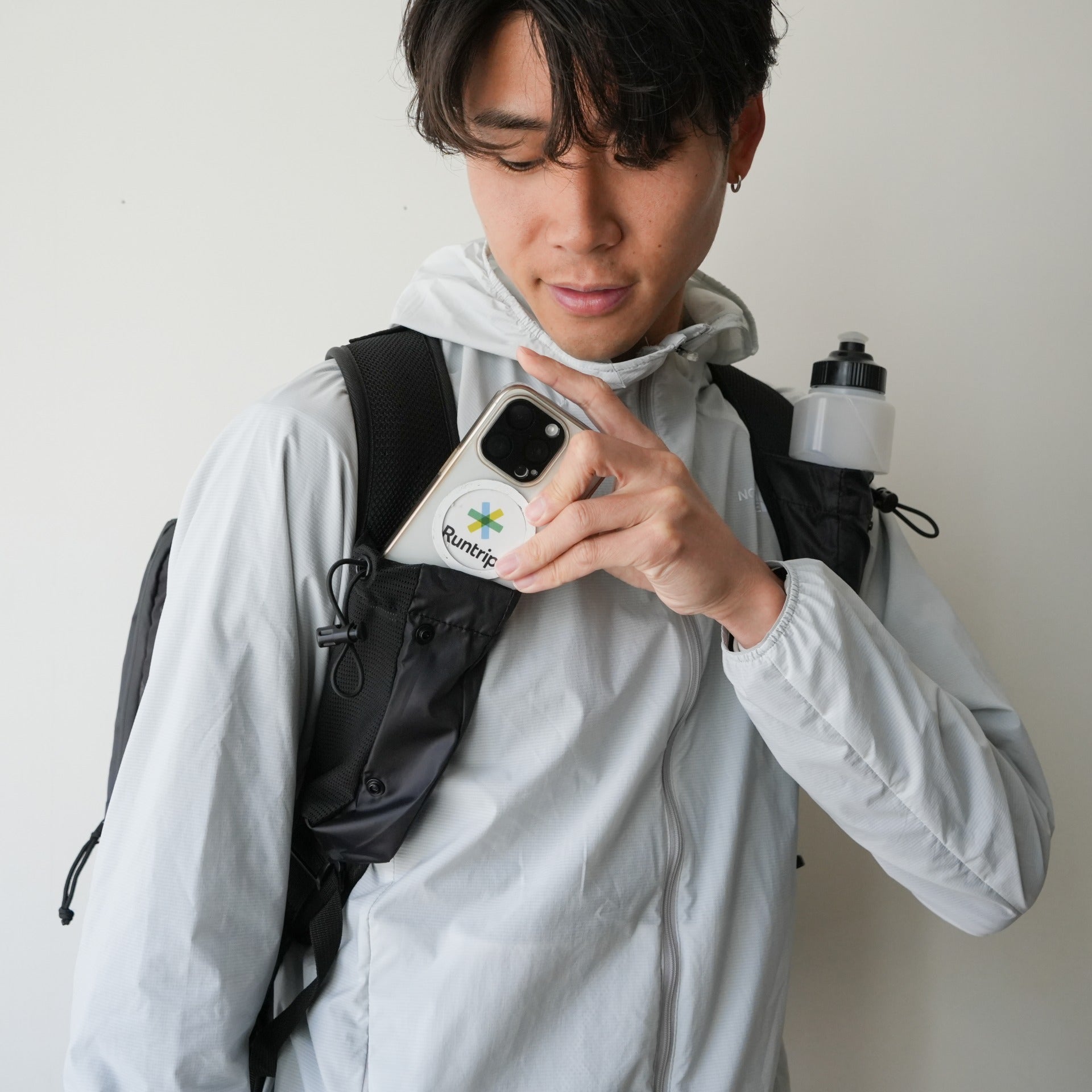 ショルダーストラップのチェストポケット:スマホや財布のハンズフリー収納に