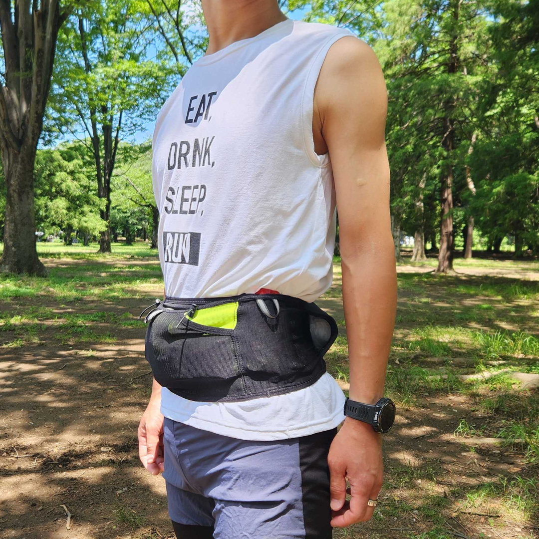 身体にぴったりフィットすることで、ランニング中にウエストベルトがずれることなく、安定感が確保されます。