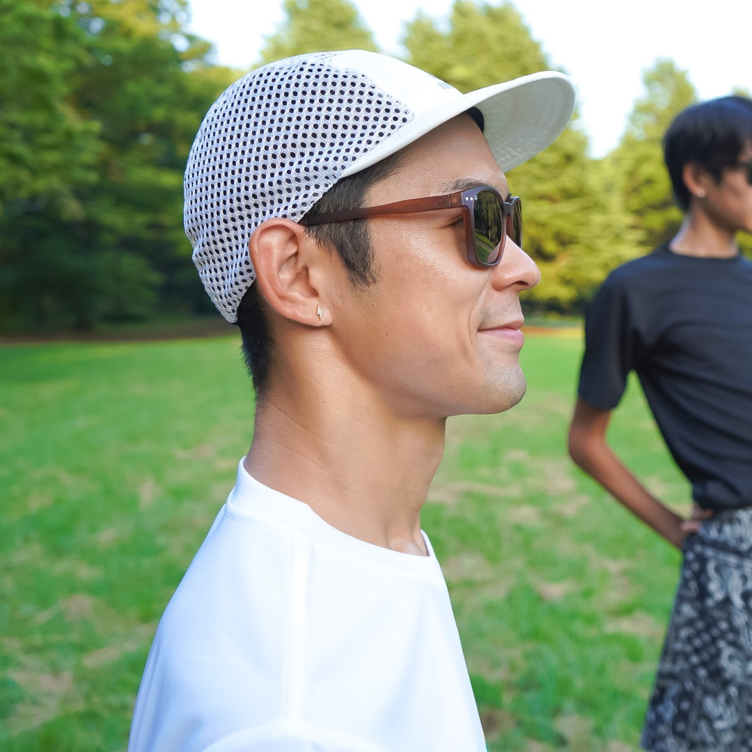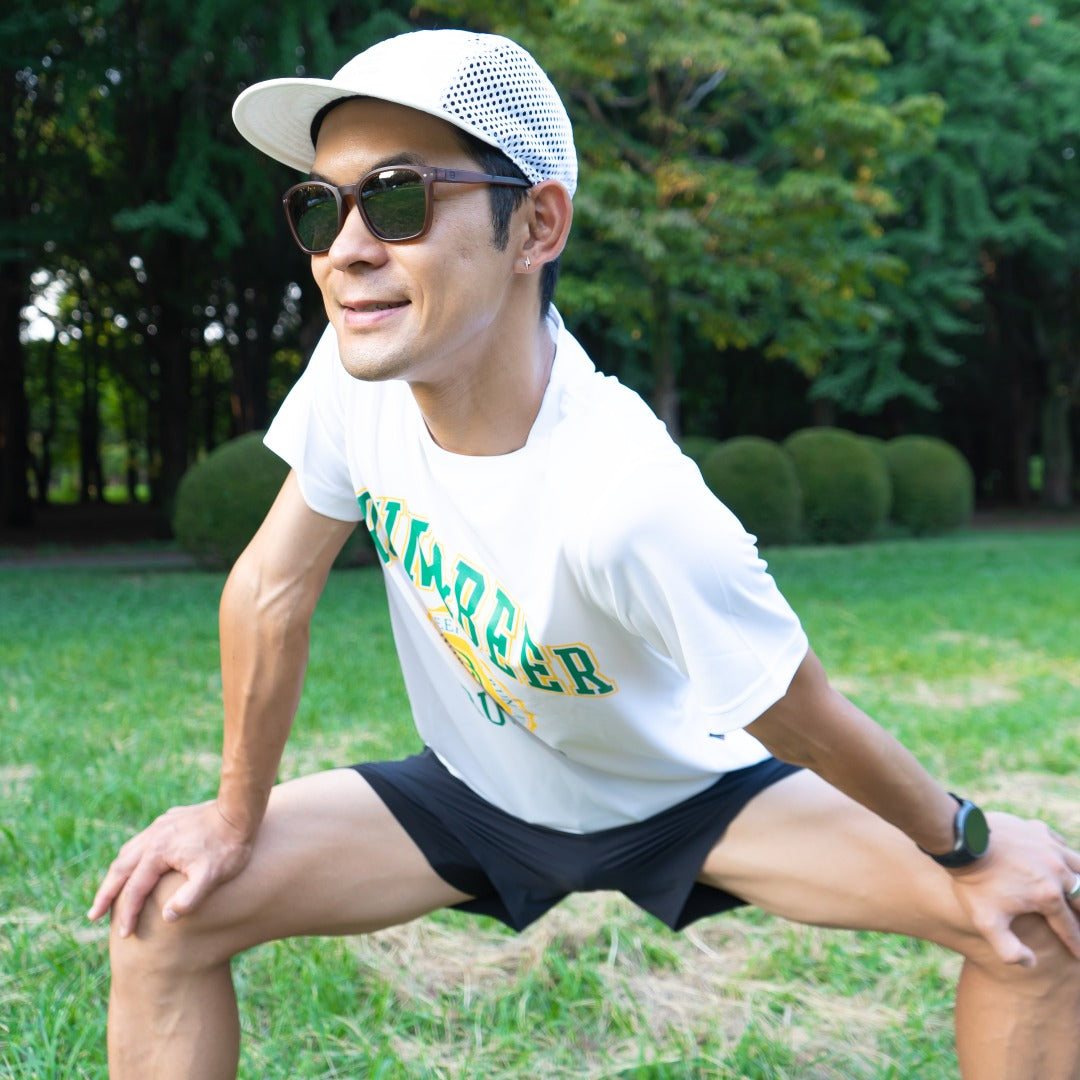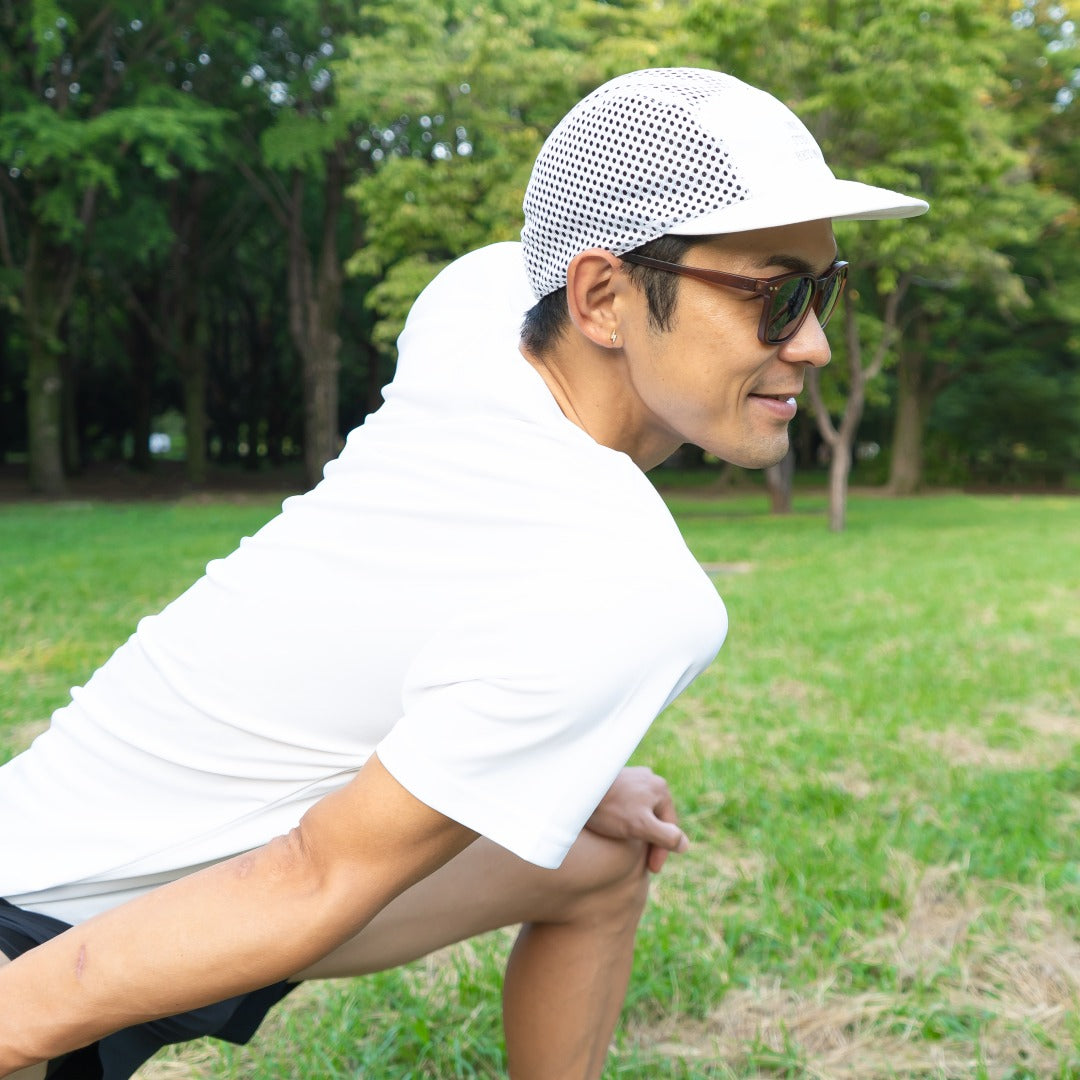 偏光レンズは、レンズとレンズの間に挟まれた透明な「偏光膜」がブラインドカーテンのような効果を持ち、まっすぐな自然光のみを明るさとして通します。地面のぎらつきや反射光は通さない効果があるので、とくに天候がいい日のランニングにおすすめ。