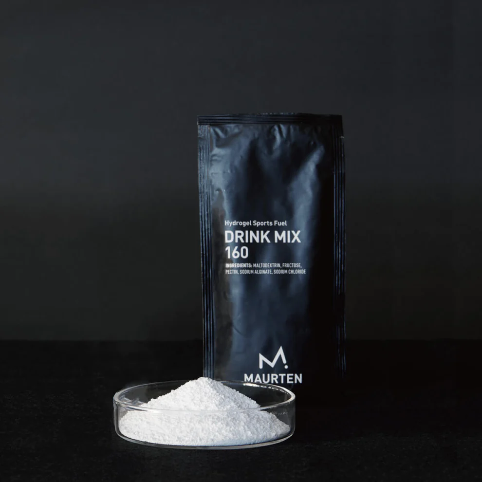「DRINK MIX 160」は、高濃度の炭水化物を封入するMAURTENが開発した”ハイドロゲル技術”により、1時間あたり最大で100gの炭水化物をエネルギーに変換することを可能にした革命的スポーツエネルギードリンクです。この量は、これまで人間が吸収できると考えられていた量の限界を超えています。