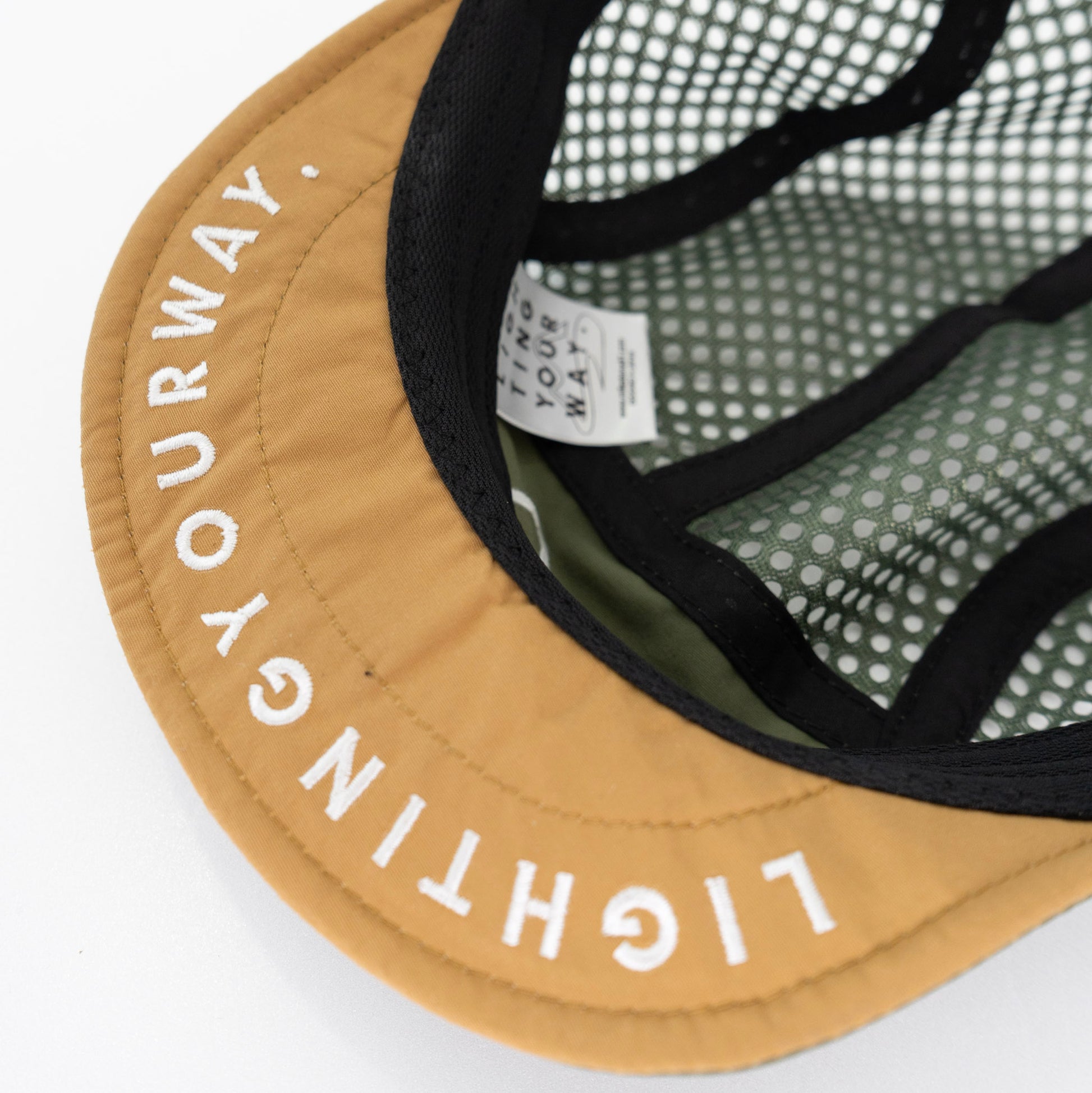 ワンポイントロゴとツバ裏に『LIGHTING YOUR WAY』を刺繍で落とし込みました。