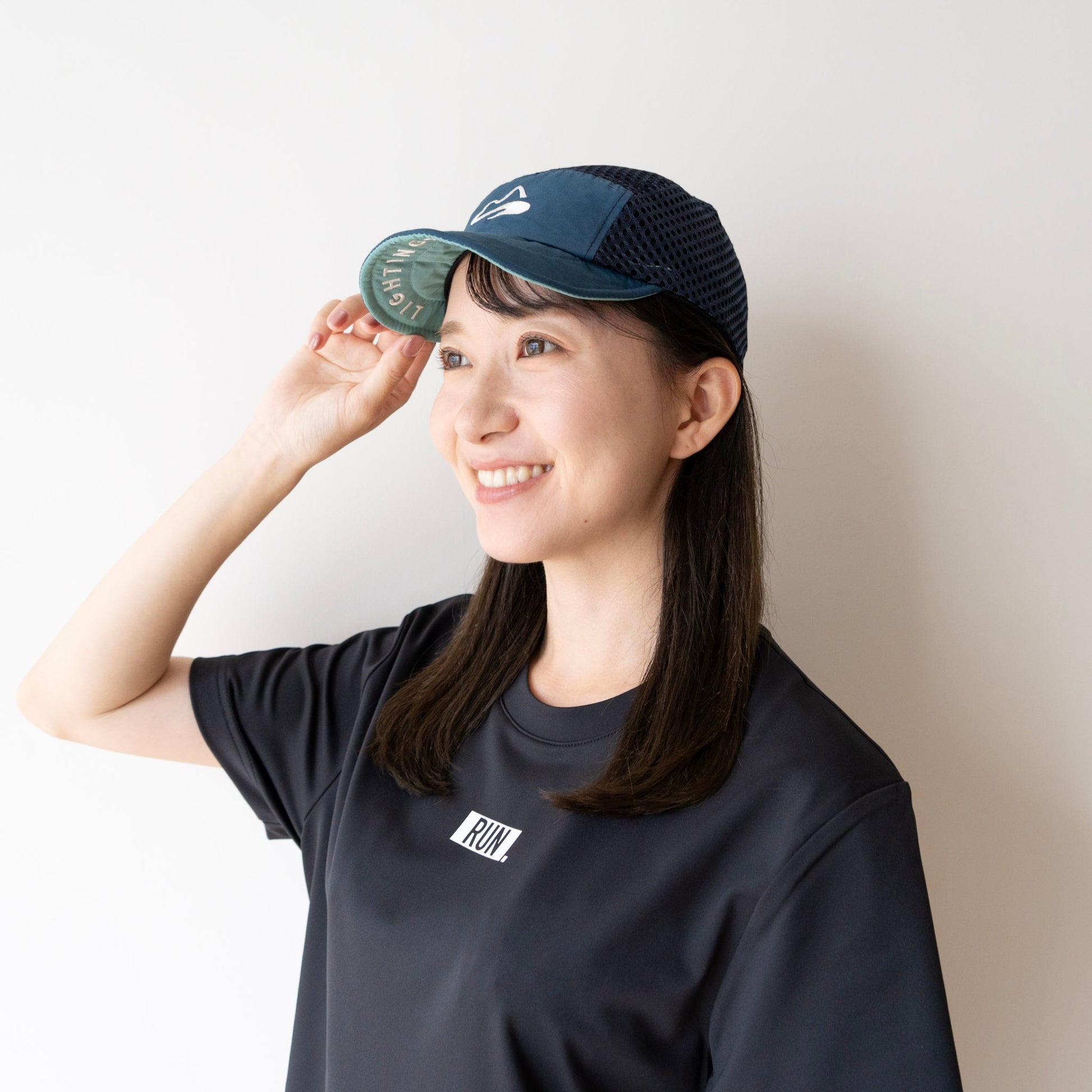 帽子のツバにワイヤーが組み込まれている為、お好みの形に曲げて形状キープすることが可能。ヘッドランプ装着時はつばを下げることで、光を遮らず照射できます。