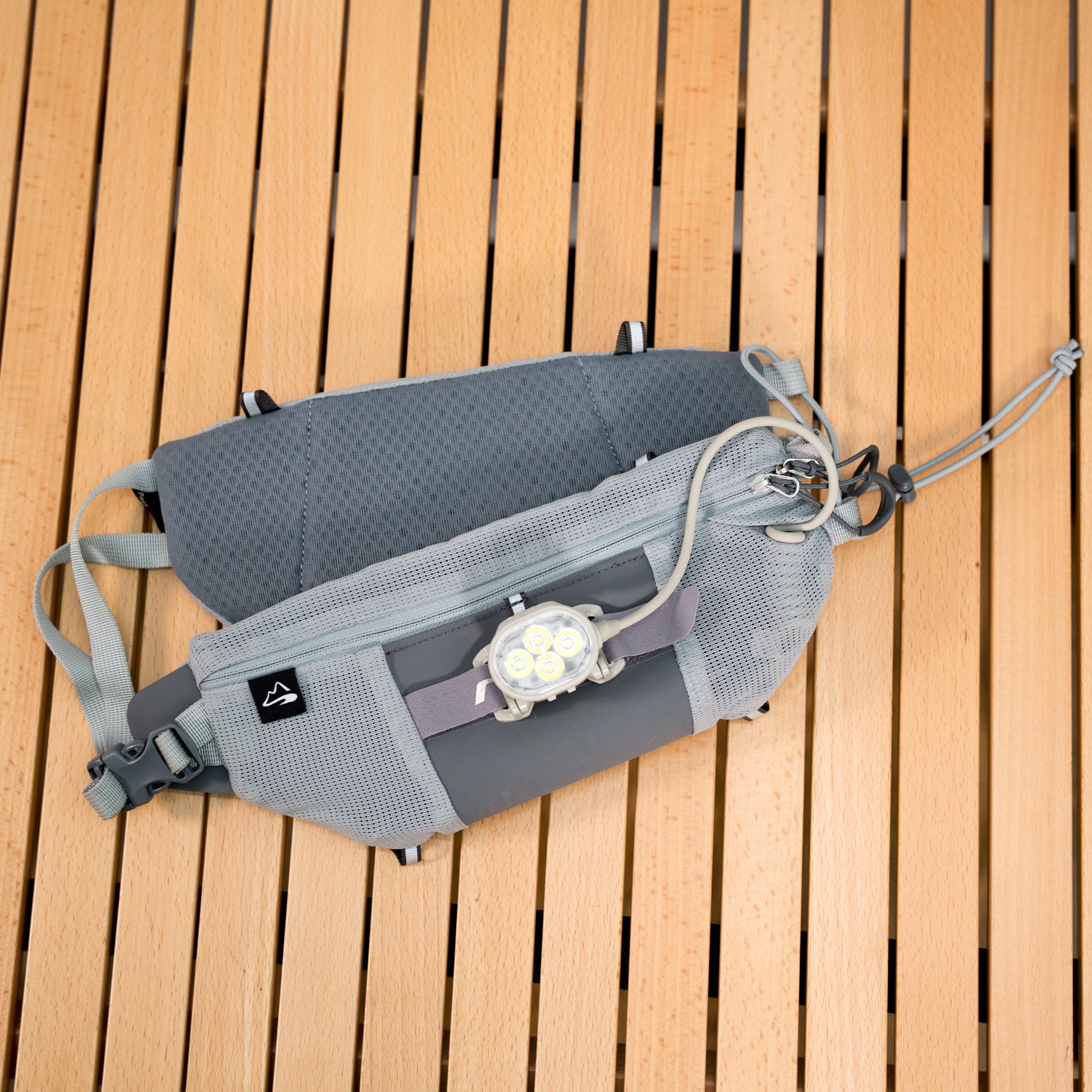 トレイルレースやナイトセクションでの使用を想定し、収納力とフィット感が大幅に向上。ライトとベルトがセット仕様となり、装備の一体感も強化されています。