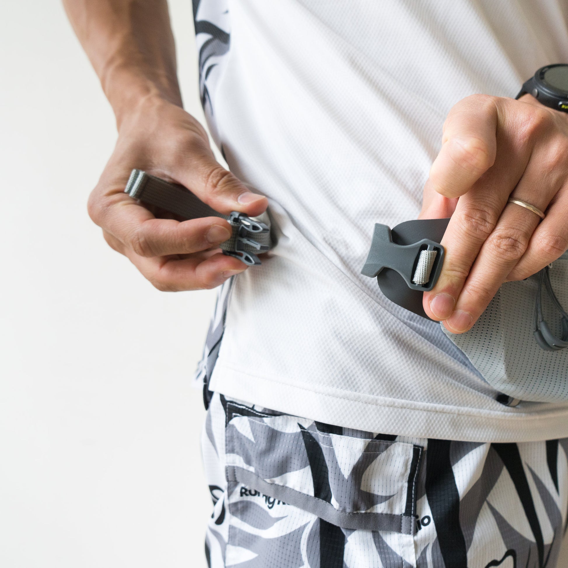 サイドにアジャスターを追加し、腰回りへの密着度を高めることでフィット感を向上。揺れを抑え、安定した走りをサポートします。